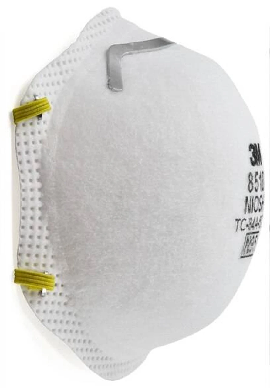 3M Particulate Respirator 8510, N95 is a disposable particulate respirator that is designed to help provide reliable respiratory protection of at least 95 percent filtration efficiency against certain non-oil based particles. Braided, two-strap headbands with dual point attachment help provide a secure fit. An adjustable M-noseclip makes it easier for workers to see by reducing potential eyewear fogging. The soft inner material provides added comfort while the cup-shape design makes the respirator spacious and durable. This respirator is designed for use for particles such as those from grinding, sanding, sweeping, sawing, bagging, or other dusty operations. This respirator can also help reduce inhalation exposures to certain airborne biological particles (examples: mold, Bacillus anthracis, Mycobacterium tuberculosis), but cannot eliminate the risk of contracting infection, illness, or disease. The respirator incorporates 3M’s proprietary technology with advanced electrostatically charged microfiber filter media designed for ease of breathing. This respirator is compatible with a variety of protective eyewear and hearing protection.