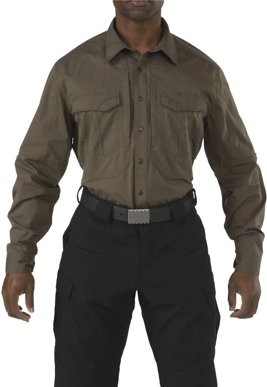 The 5.11 Tactical Stryke Long Sleeve Shirt is constructed from the same 4.84 oz. Flex-Tac mechanical stretch fabric as the popular 5.11 Stryke Pant. This shirt offers unprecedented durability, comfort, and mobility while maintaining a clean and professional appearance. The Stryke Shirt is Teflon treated to repel moisture, stains, and precipitation and the pen pockets on the left sleeve keep your writing instruments within easy reach at all times. Hidden document pockets on the chest offer covert storage space. Bartacks have been added at all major stress points for enhanced durability.