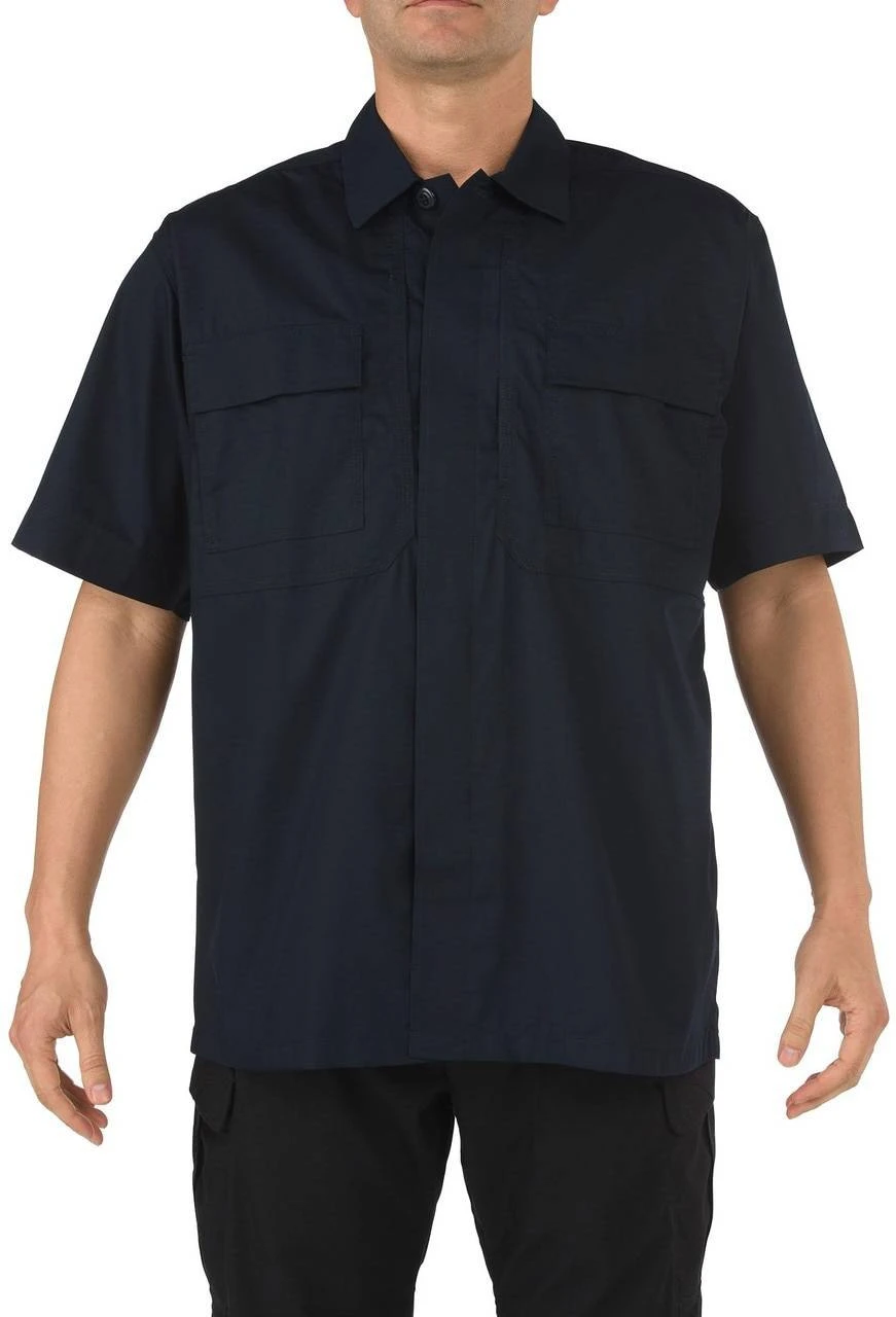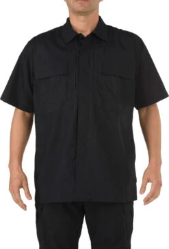 The 5.11 Tactical Taclite TDU Short Sleeve Shirt is made from a 4.4 oz Taclite Ripstop Fabric and is an ideal choice for tactical duty use. This shirt is rugged, fade-resistant, and Teflon coated for stain, moisture, and soil resistance. Bi-swing shoulders and bartacking at key seams and stress points make this shirt as comfortable as it is tough.