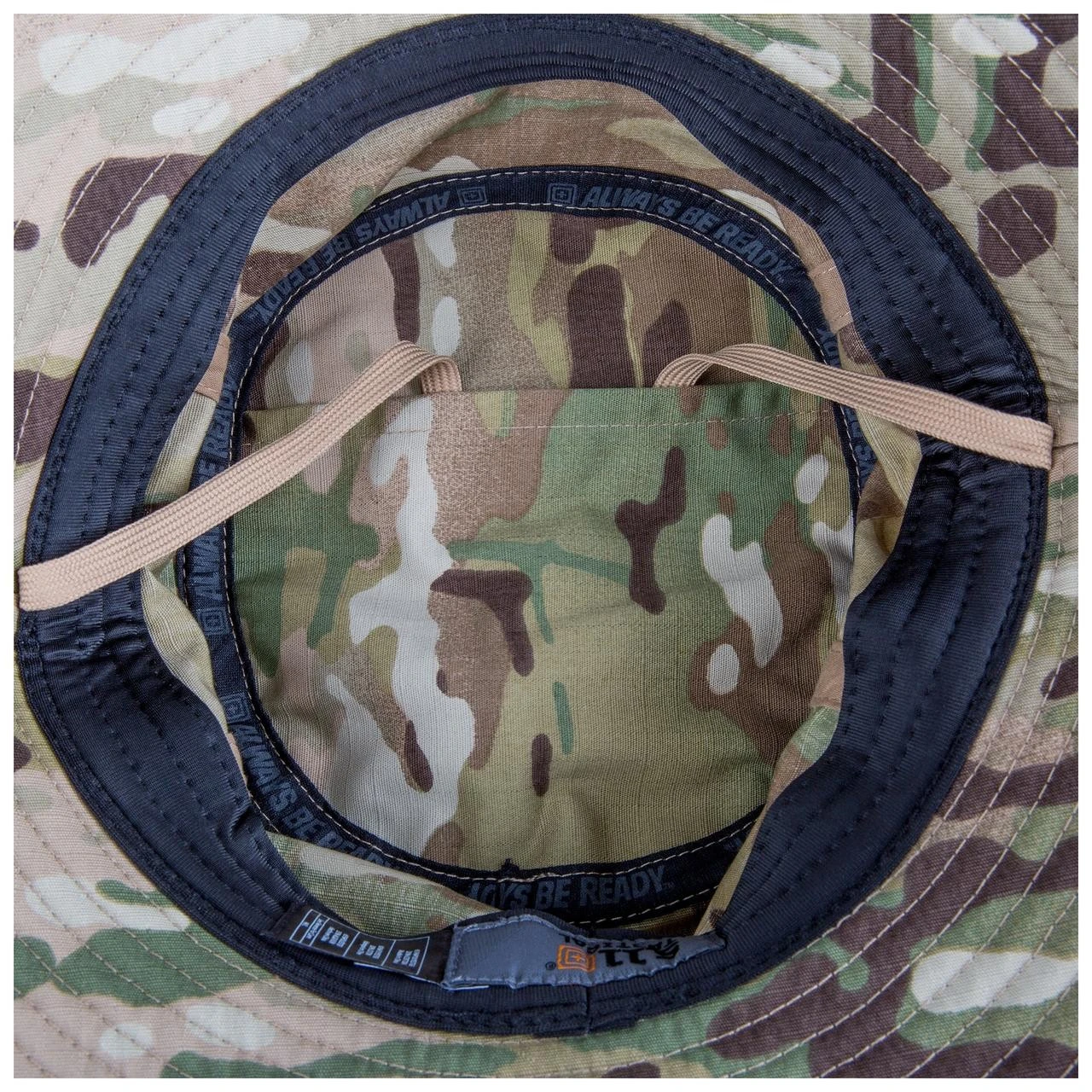 The 5.11 Tactical Multicam Boonie Hat is constructed of a lightweight, durable poly/cotton TDU ripstop fabric with a Teflon finish to repel moisture, stains, and soil. This bucket hat has ventilation eyelets and a wicking sweatband to help keep you cool in warm climates.