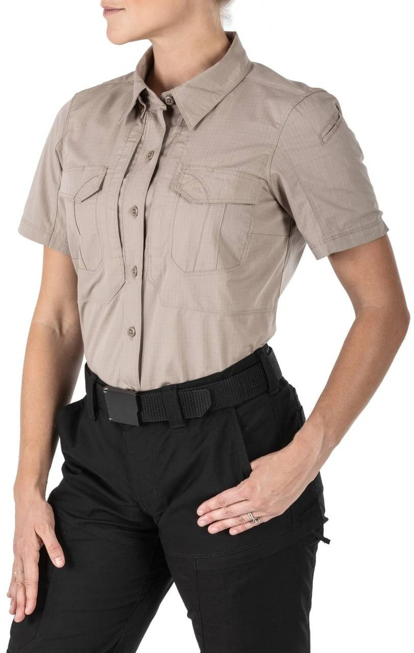 The 5.11 Tactical Women’s Stryke Short Sleeve Shirt is constructed from rugged Flex-Tac mechanical stretch ripstop fabric with a Teflon finish to repel water, stains and soil. Dual chest pockets feature flaps, and the 5.11 Ready Pockets are ideal for storing your phone or other sensitive gear. Hidden button-down collar tabs, a patented sleeve pen pocket, and Melamine buttons round out the look on a shirt that is every bit as tough as your daily duties.