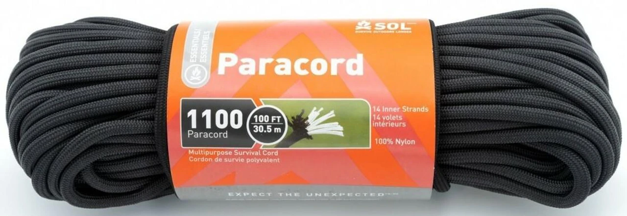 The SOL 100ft. 1100 Paracord is perfect for all your outdoor needs and can be used as a splint or torniquet in an emergency. This 14 strand paracord is made of a 100% nylon outer sheath can be used for a mountain of multi-use functions.