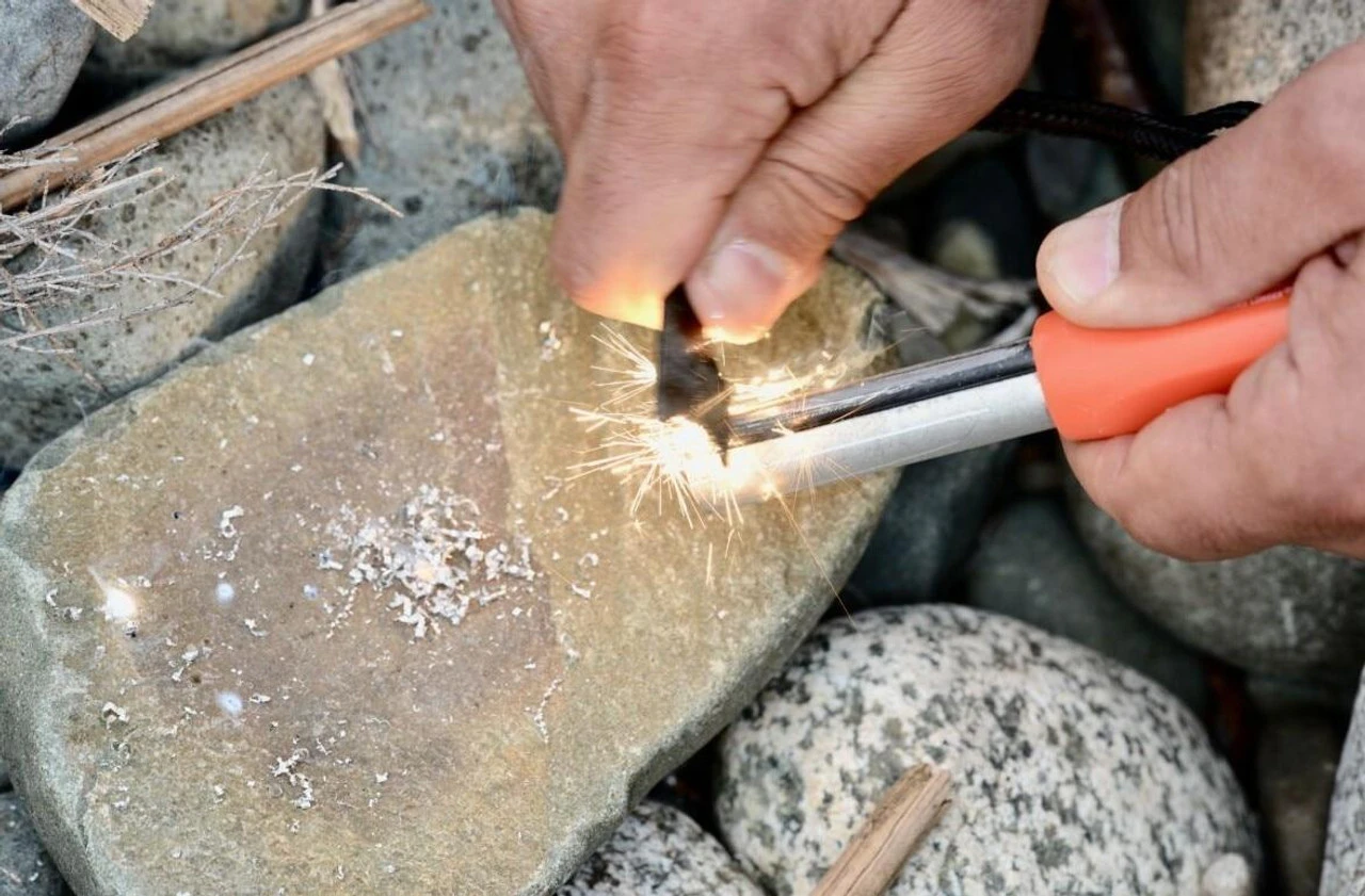 - The ferrocerium flint creates enough sparks to start over 100 fires and lights in all weather conditions