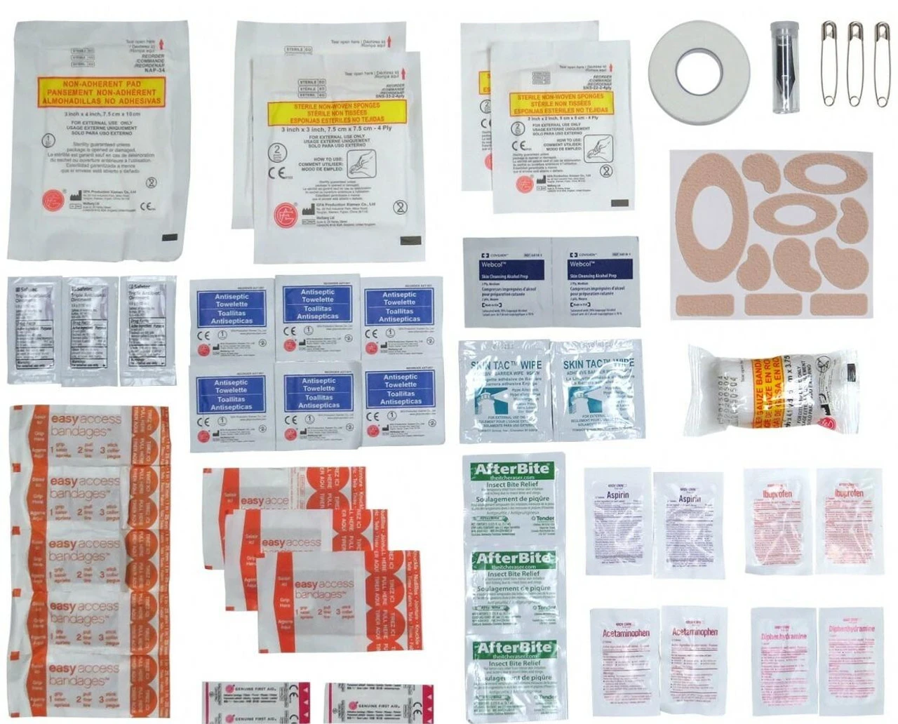 - Antiseptic wipes and butterfly bandages for closing small wounds.