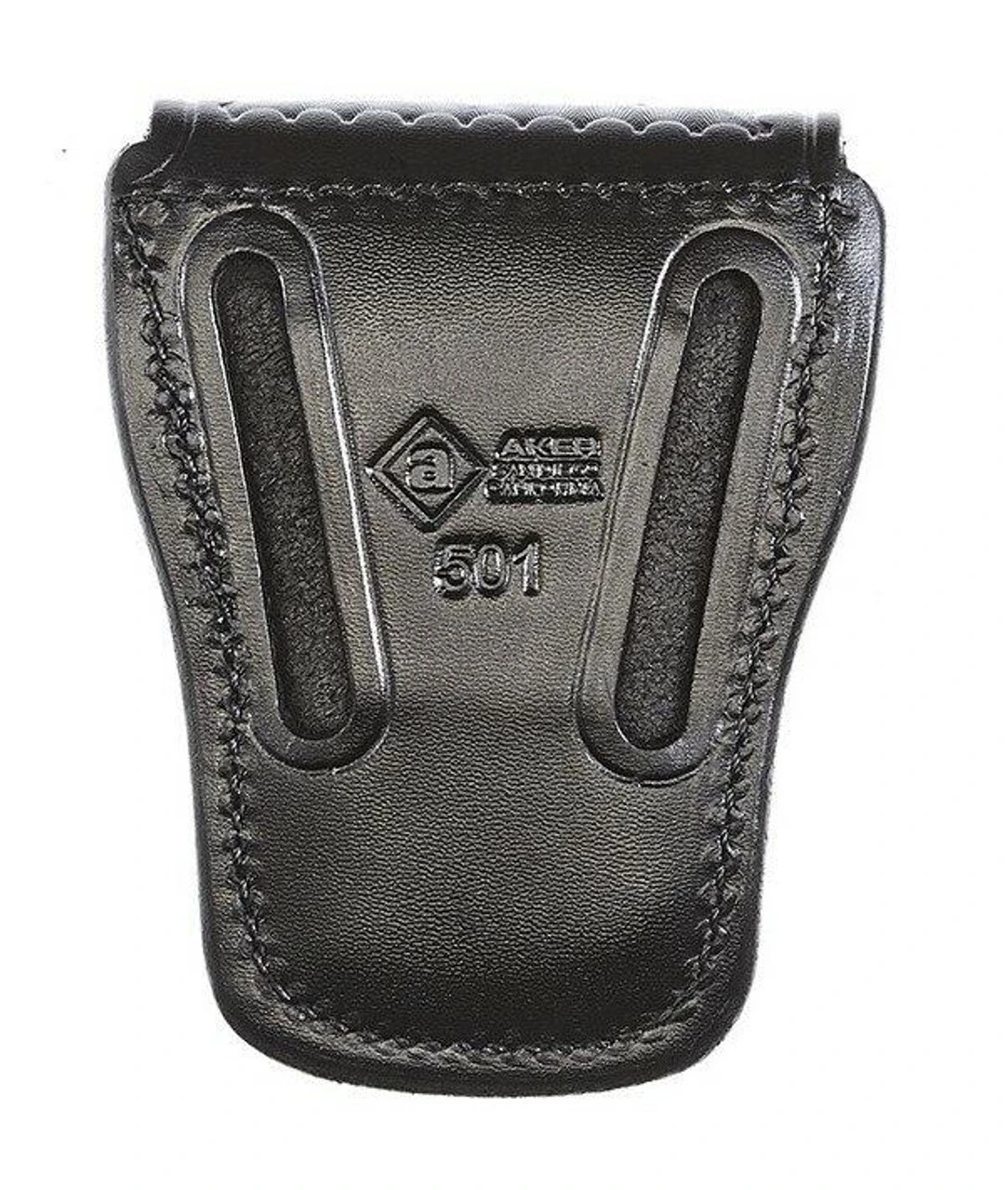 The Aker Model 501 Teardrop Handcuff Case features a teardrop design, as specified by the California Highway Patrol. This teardrop cuff case fits one pair of chain handcuffs, including Smith & Wesson Model 100 handcuffs and the Peerless 700C and 730C.