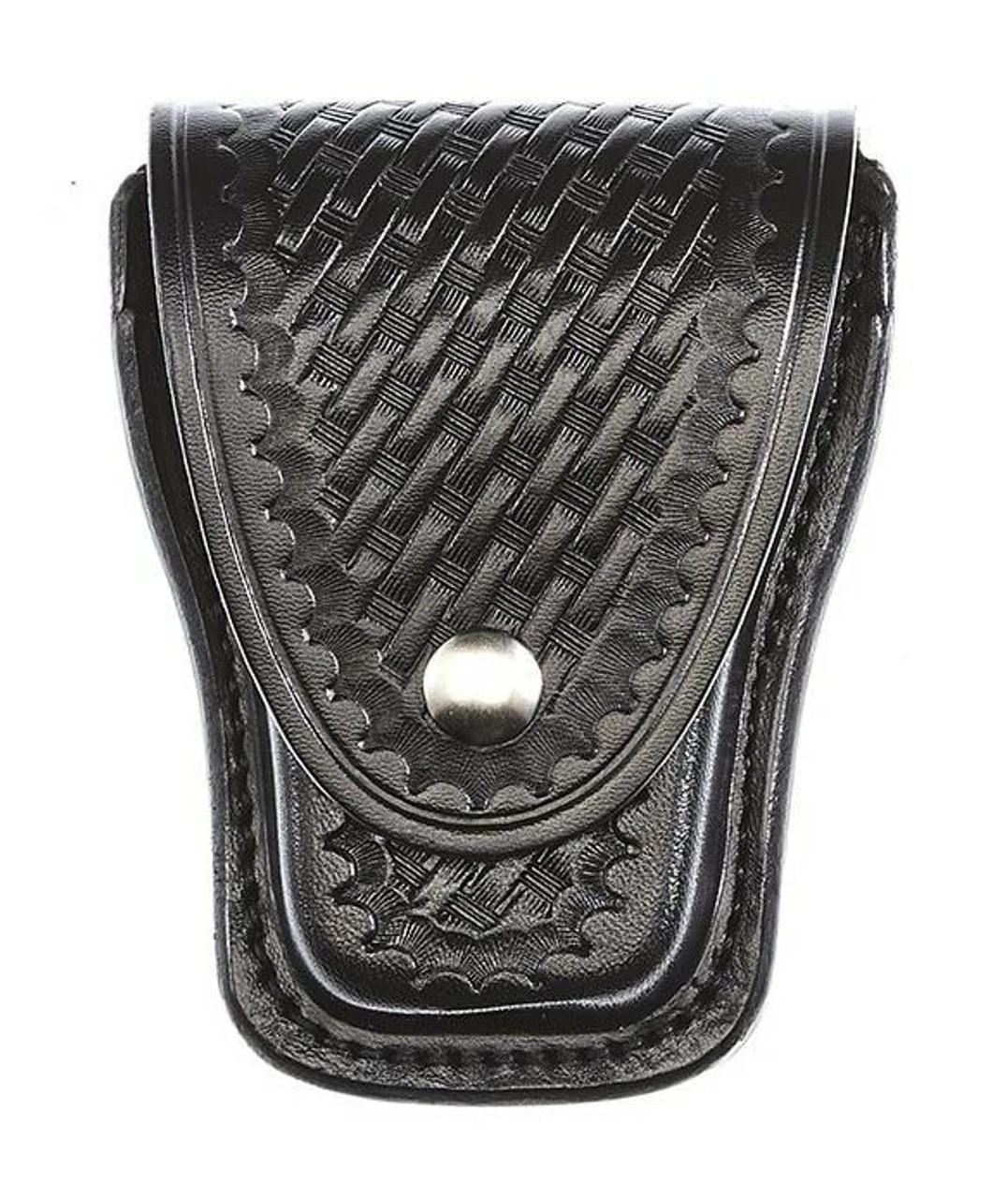 Each handcuff case is hand crafted from the highest grade of full grain vegetable tanned leather and uses heavy-duty nylon bonded thread. The case is available in plain or basketweave and finished with a US-made solid brass snap fastener in chrome, brass, or black. Hidden snaps are available for an additional charge. Two pre-molded belt slots on the rear allow the handcuff case to easily slide onto duty belts with up to a 2-1/4″ width. Each slot is angled inward so that your case stays secure on the belt and does not sag or move around.