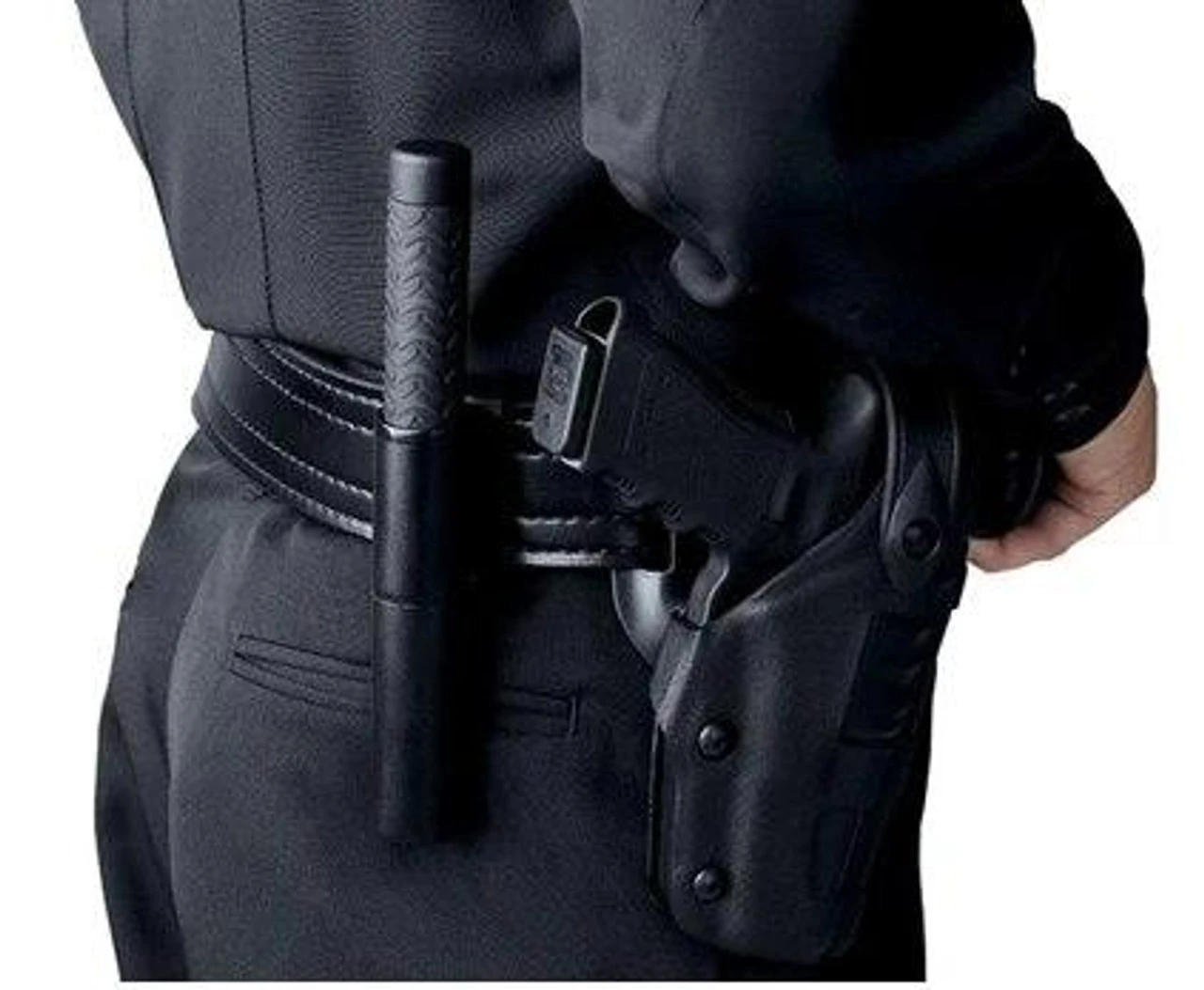 The Federal Scabbard rotates to 7 distinct positions on the duty belt and hold the baton in either a retracted or expanded mode, ready for rapid presentation while providing secure retention during dynamic confrontation. It will not rotate beyond horizontal or compromise the security of a baton. There is an adjustable internal clip that lets you set the amount of baton retention to your preference. This tough polymer scabbard features the exclusive snap-loc belt loop which attaches anywhere on the belt without having to thread or unthread other duty gear. The belt loop features an indexed slide track and bar that adjusts to fit all common duty belt and dress belt width or MOLLE Gear.Â