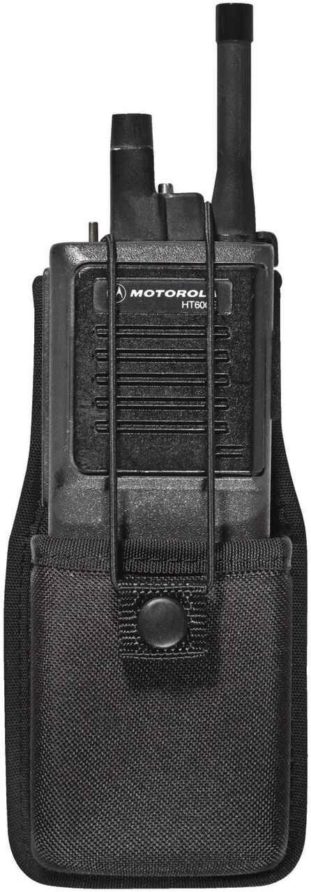 The Bianchi 8014 PatrolTek Universal Radio Holder is designed with contour molded technology with trilaminate construction and a 600-denier finish. This radio holder fits most hand-held radios and features an adjustable elastic security strap with a snap closure. A dual web belt loop design conveniently accommodates both 2″ and 2.25″ duty belts.