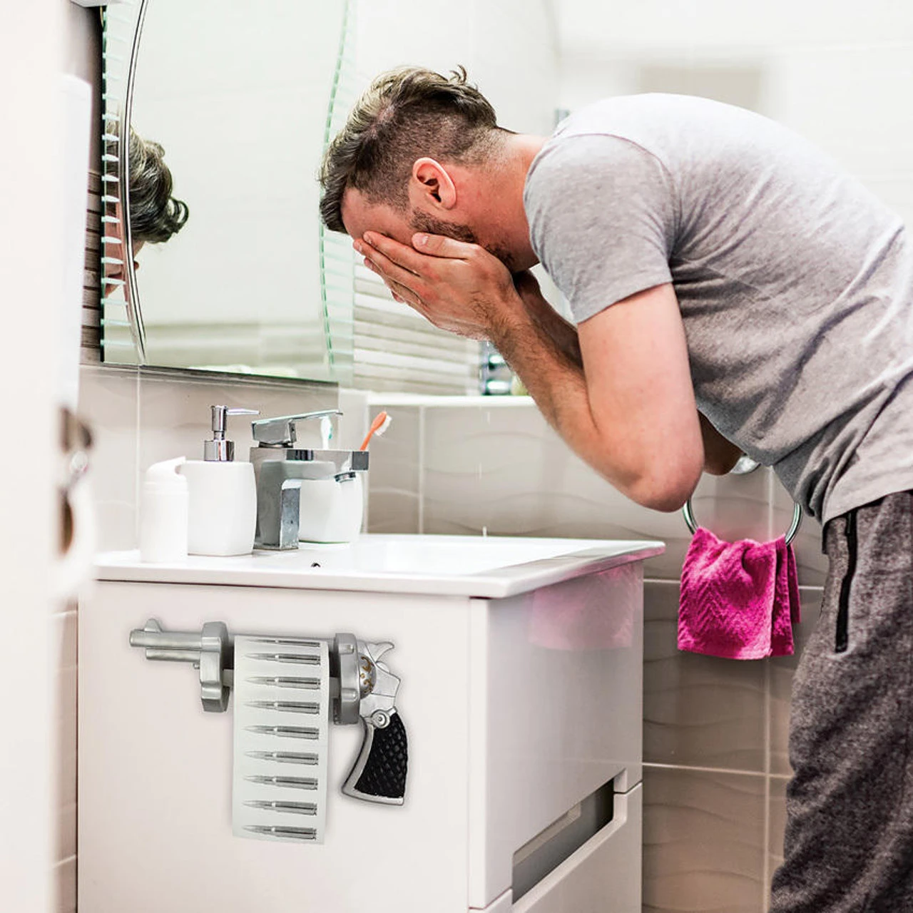 The Caliber Gourmet Revolver Toilet Paper Holder features a textured grip, silver finish, and simple flourishing details that will add a cure and finished touch to your bathroom.