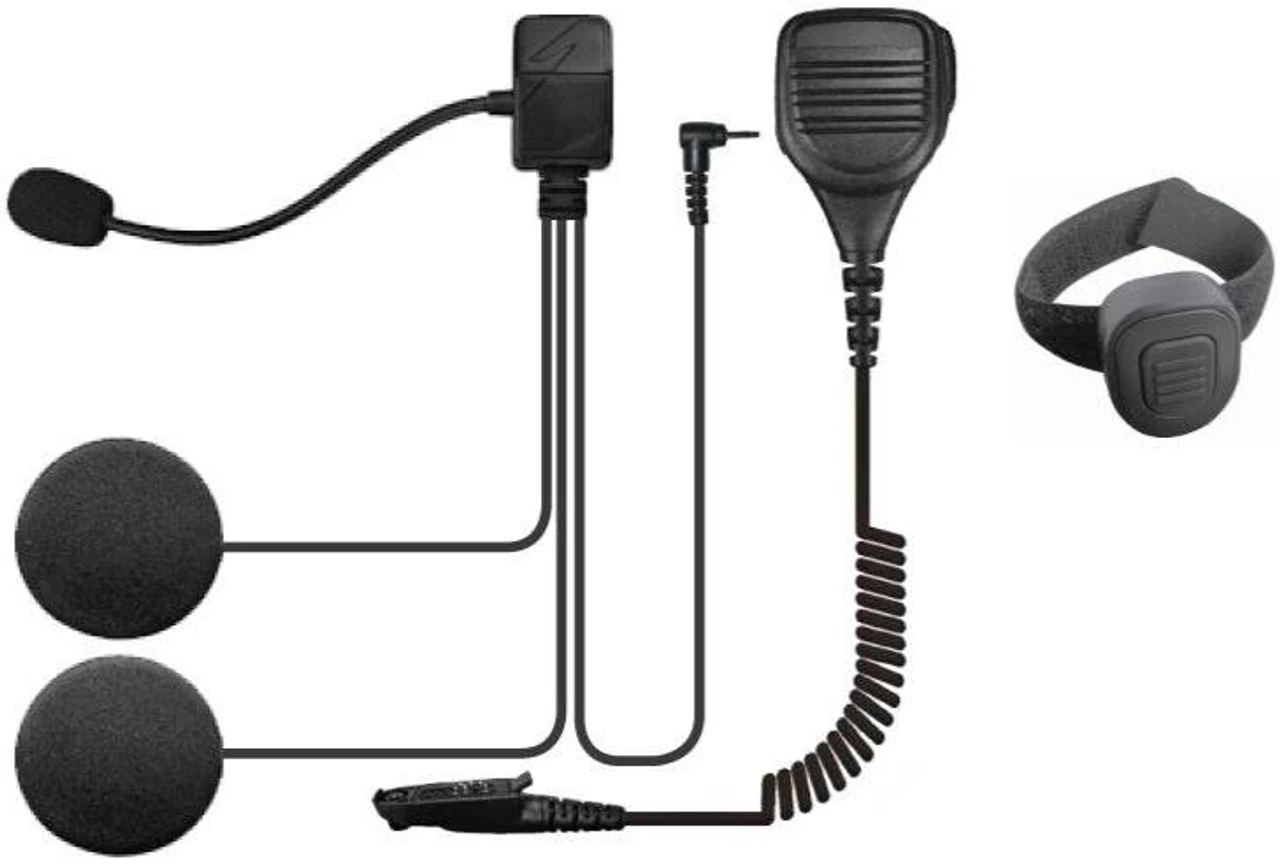 The Earphone Connection MotoX Motorcycle Headset is cutting edge WIRELESS push-to-talk (PTT) set that allows for rapid transition when dismounting from the motorcycle. No connecting or disconnecting cables. Remove the helmet and use the speaker microphone for traditional communication. TO BE USED WITH PORTABLE RADIO ONLY.