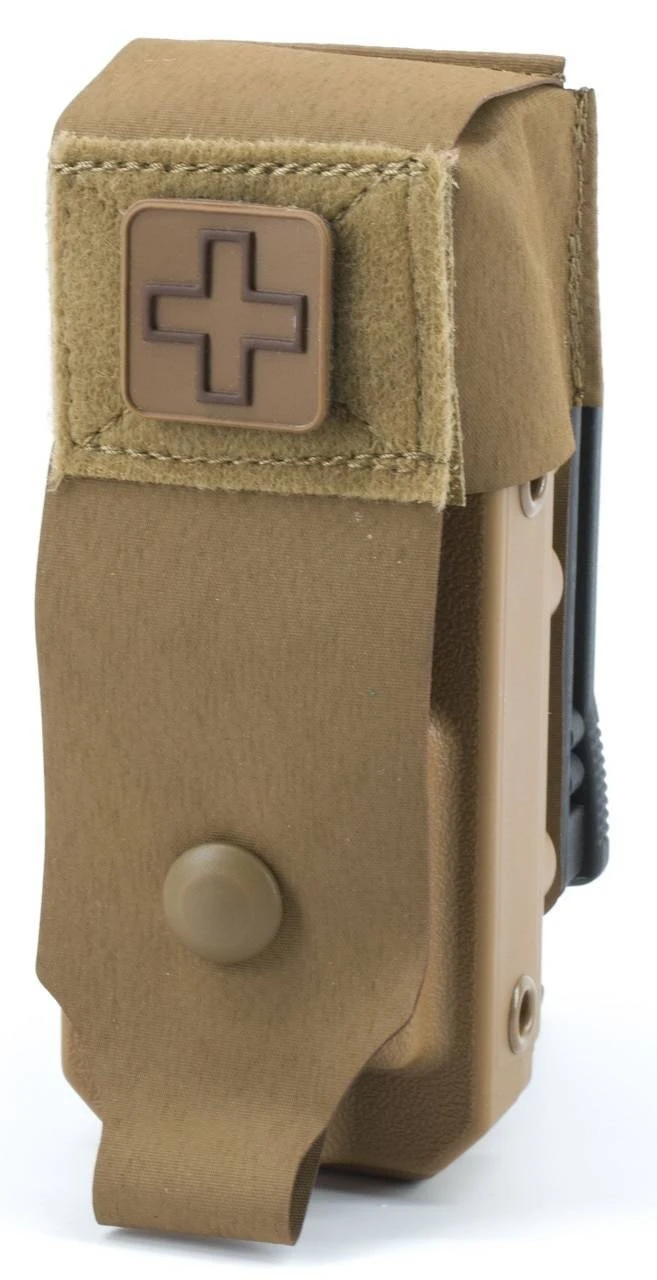 The Eleven 10 RIGID TQ Case Jacket for SOF TT/SOF TT-W is an optional accessory that when installed, completely covers your tourniquet to protect it from the elements. It also helps provide a clean, uniform look. The Jacket integrates with the existing hardware on your RIGID’s rear mounting face, and the included snap uses an existing hole on the front of the Cross Front RIGID models. When deployed, the Jacket “breaks away” so there is no snagging on your tourniquet.