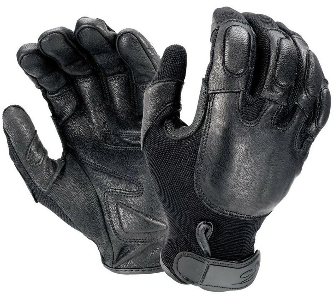 The Hatch Defender II with Steel Shot Glove is the most advanced weighted defense gloves available. Perfect for correctional, riot or disturbance control operations. The Hatch Defender II has Spandex backs, ergo-cut design, double-layered goatskin palms and hook and loop closures that offer a comfortable fit and grip. Each finger is foam padded for protection, while four ounces of steel shot in each knuckle area stops aggressors in their tracks. The Hook and loop closure helps keep glove taut while the Spandex fabric allows for freedom of movement. The palm of the glove is double-layered with goatskin for improved durability.