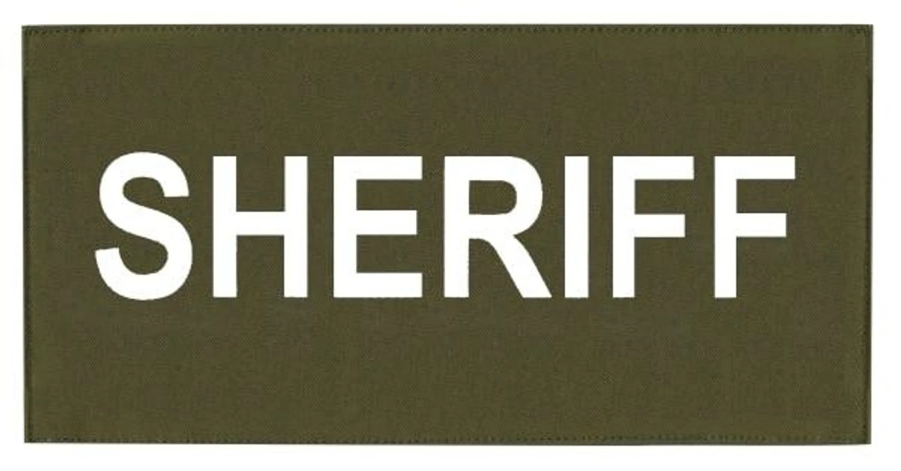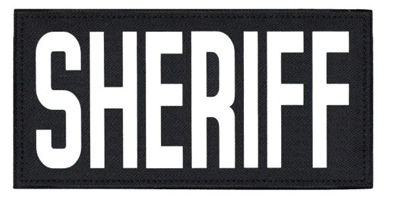 The Hero’s Pride Sheriff Tactical Chest and Back Set is made with high quality materials. It features bold text on various colored backgrounds.