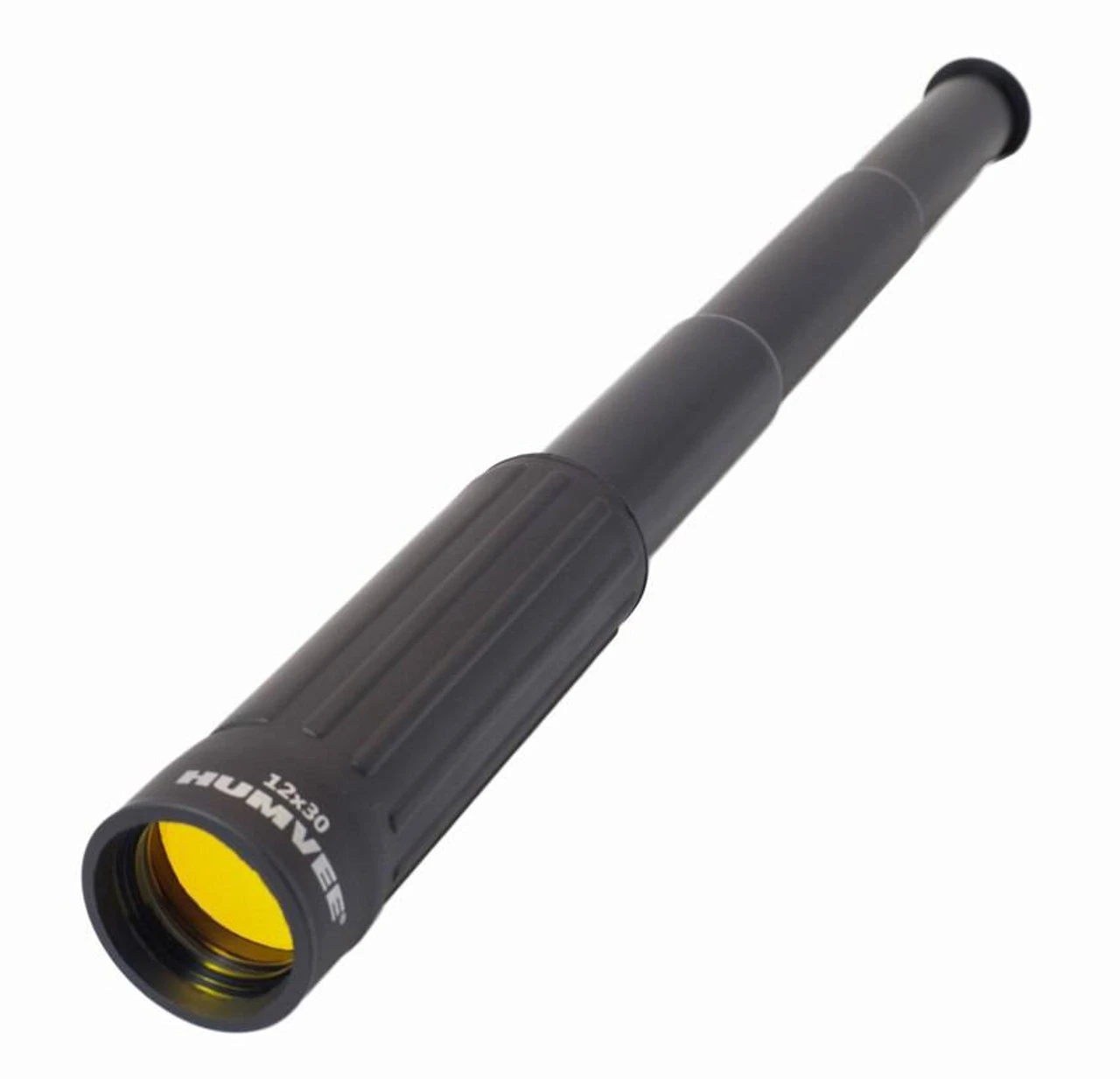 The HUMVEE Rubber Coated Telescope combines innovation, technology and cutting-edge design to provide optical excellence with an exceptional value. This telescope has a 12x magnification, 30mm objective lens diameter, extends to a full 15-Inches and is designed for long distance observation. Built Humvee tough, this monocular has black rubber coating with no-slip grip making it very durable and comfortable to use during lengthy viewing sessions. This precision instrument is compact, portable and ideal for all outdoor activities. This optic also features an innovative design and focusing lens. Equipped with anti-reflective light gathering ruby red glass lens, this spyglass is great for military use, hiking, bird watching or hunting and will crossover from one environment to the next. The HMV-B-TELESCOPE will always perform at its best in the field and provide years of magnificent views of the world around you and the skies above. This telescope includes a carrying case, measures 5.5-Inches (L) by 1.5-Inches (W) by 1.5-Inches (H), weighs 5.8-ounces and has the HUMVEE logo branded on the item. The HUMVEE HMV-B-TELESCOPE Rubber Coated Telescope comes with a 1-year warranty. HUMVEE has become the backbone of U.S. forces around the world. Our HUMVEE gear is modeled after equipment that is depended on in the rigors of battle. These products are designed to survive the most demanding situations while still remaining simple and easy to use.