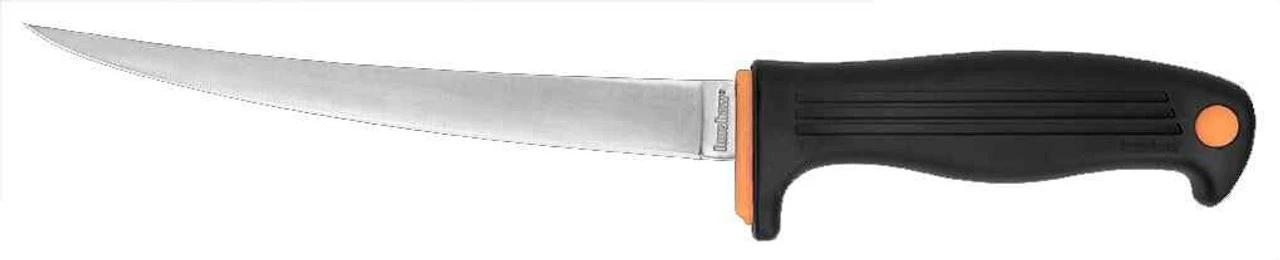 The Kershaw 7″ Clearwater Fillet Knife is perfect for filleting medium-to-larger fish with quickly and easily. The blade is made of Japanese 420J2 stainless steel with the perfect amount of flexibility to make the job of filleting fast and efficient. This “softer” steel enables the blade to bend without breaking so that it moves easily through the body of the fish to give you the ideal fillet. The steel is also constructed with highly corrosion resistant materials which is especially important when you’re working around water.