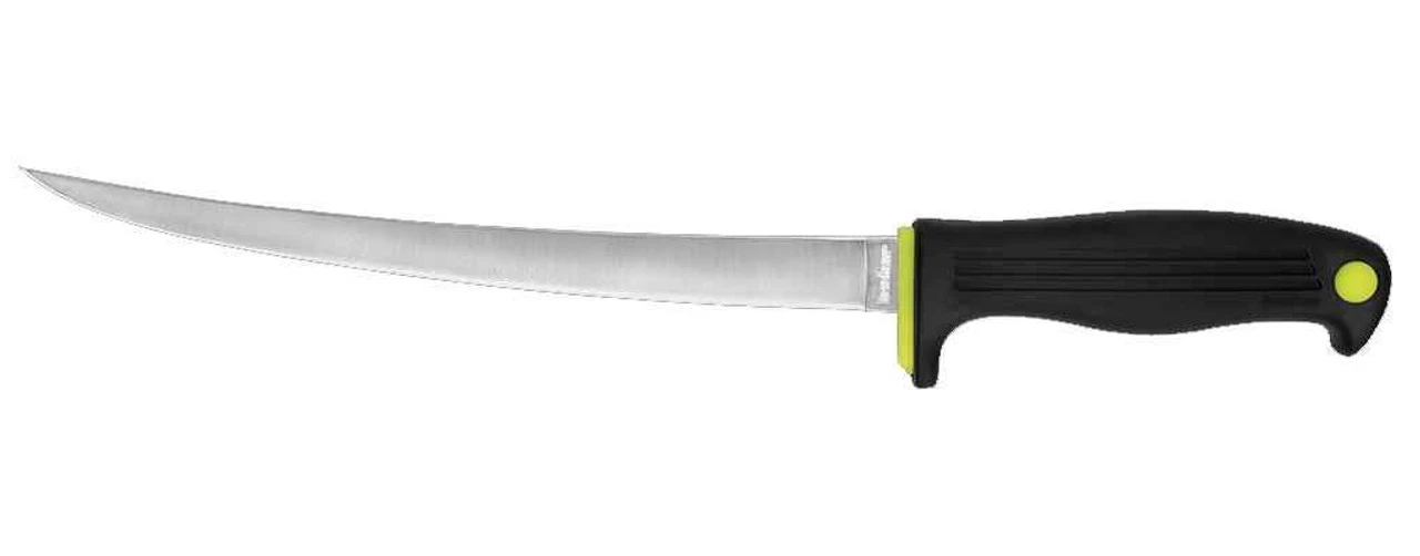 The handle is durable and contoured for filleting comfort. Neon highlights in the handle make it easy to spot in a marine environment while still looking good with a basic black handle. The co-polymer handle material provides an excellent grip and its soft-yet-firm texture makes the job of filleting even a large catch less fatiguing.