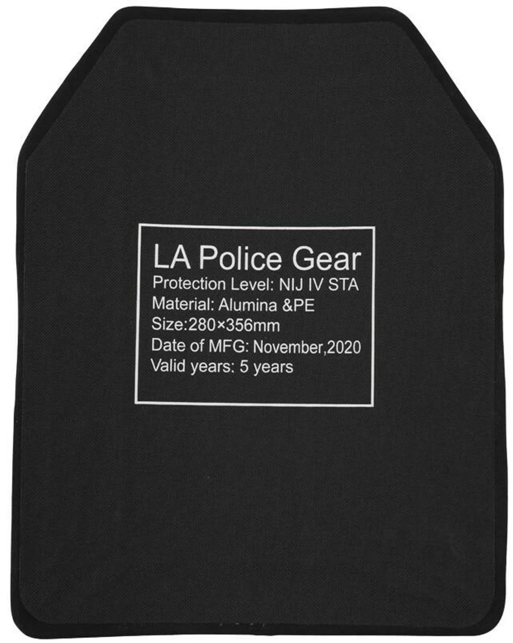 The LA Police Gear Level IV 11″ x 14″ Ceramic Ballistic Armor Rifle Plate weighs in at 9 pounds and has a slim 1″ profile with an ergonomic single curve for added comfort. A waterproof polyester/nylon cover enhances durability, ensuring the plate will last its 5 year shelf life. Rated at Level IV, this plate is capable of taking multiple armor piercing rifle rounds.