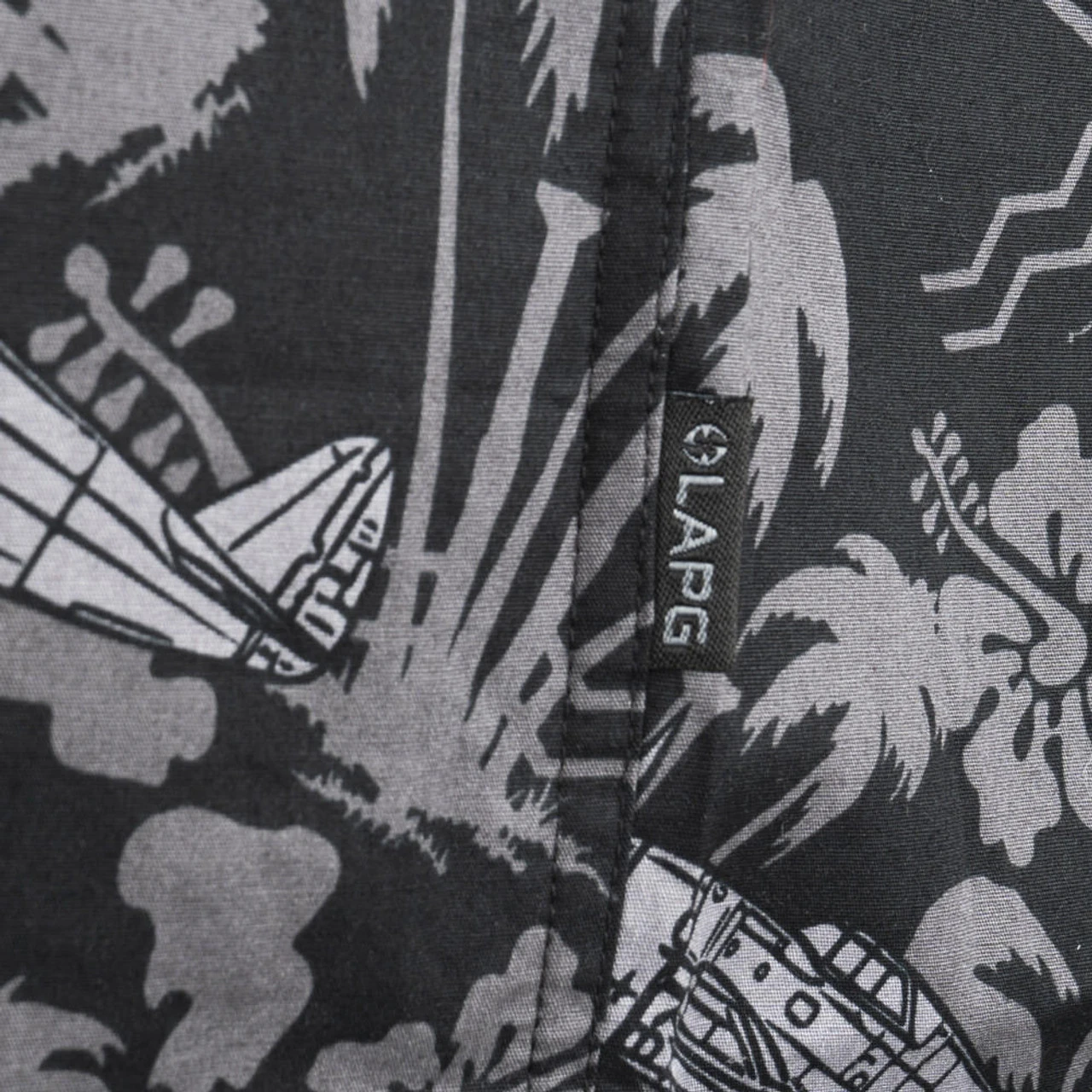 - Snap Buttons On Entire Shirt, One Button Says “LAPG”