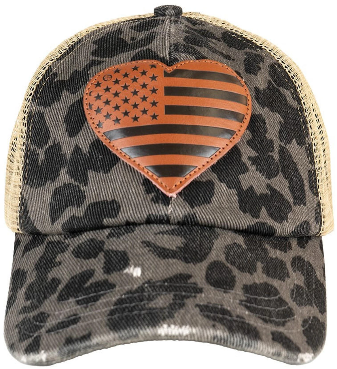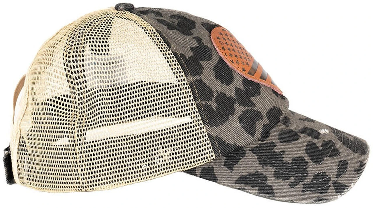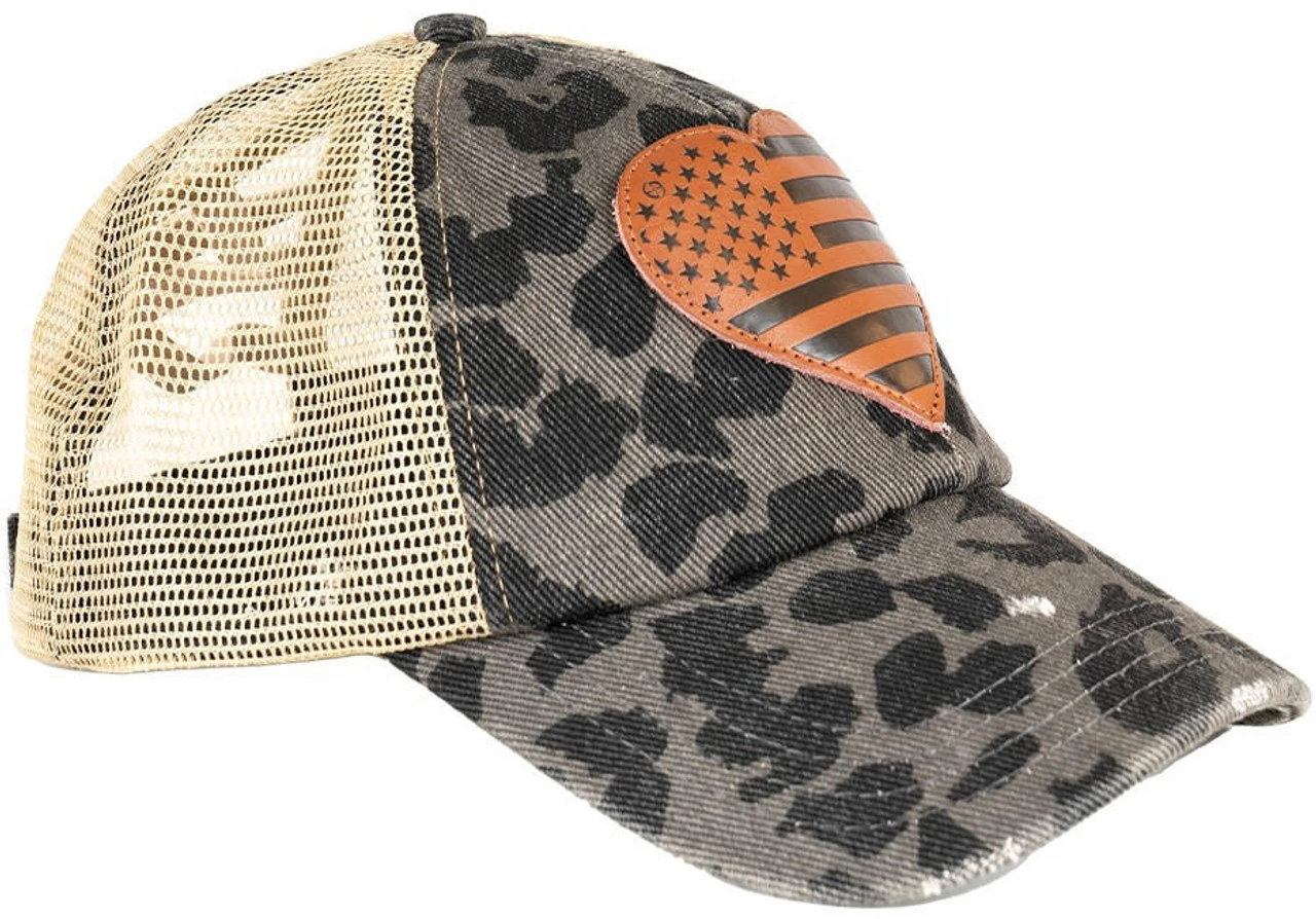 The LA Police Gear Pony Tail Leopard Heart Hat has criss-cross elastic bands that allow you to style your hair at multiple levels, whether that be a low ponytail or a high bun. The mesh back offers enhanced breathability to help keep you cool and dry and the hook & loop strap allows for an adjustable fit.