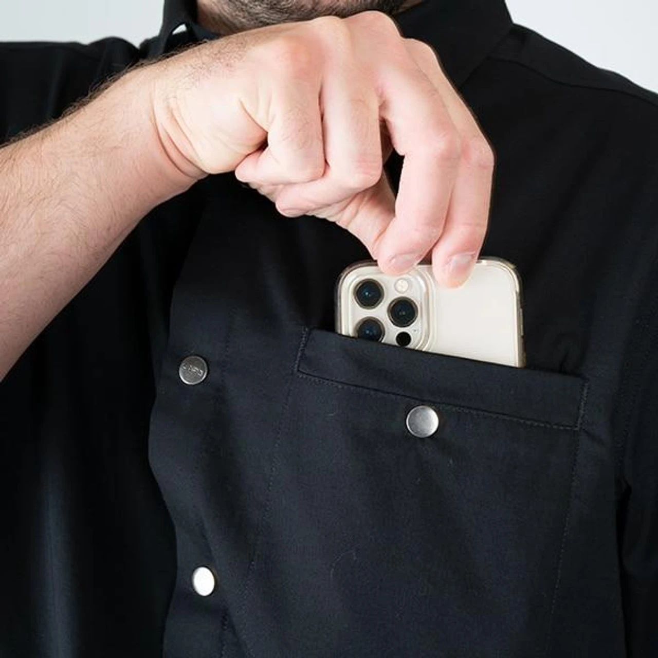 The soft and lightweight 97% cotton/3% spandex fabric has just the right amount of stretch to make it incredibly comfortable and yet high performance. One single left chest pocket, plus pen pockets on the left sleeve, provide function to this button up shirt while still maintaining that minimal and covert appearance. The buttons are all snaps for ease of use and quick access to your waistband if necessary.