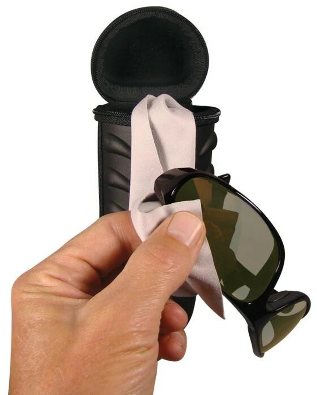 The Nite Ize Rugged Hard Shell Optics Case features molded foam construction, with a rugged hard-shell exterior, that provides crush protection for your glasses. This universally sized, zip top-loading case is made with a durable, weather-resistant hard shell exterior that keeps glasses safe and sound. A sewn-in microfiber cleaning cloth is always at hand to keep your lenses clean, and the durable clip attaches securely to belts or straps up to 2″ wide. This means when you put your glasses in it, they are protected and ready when you need them. Problem solved.
