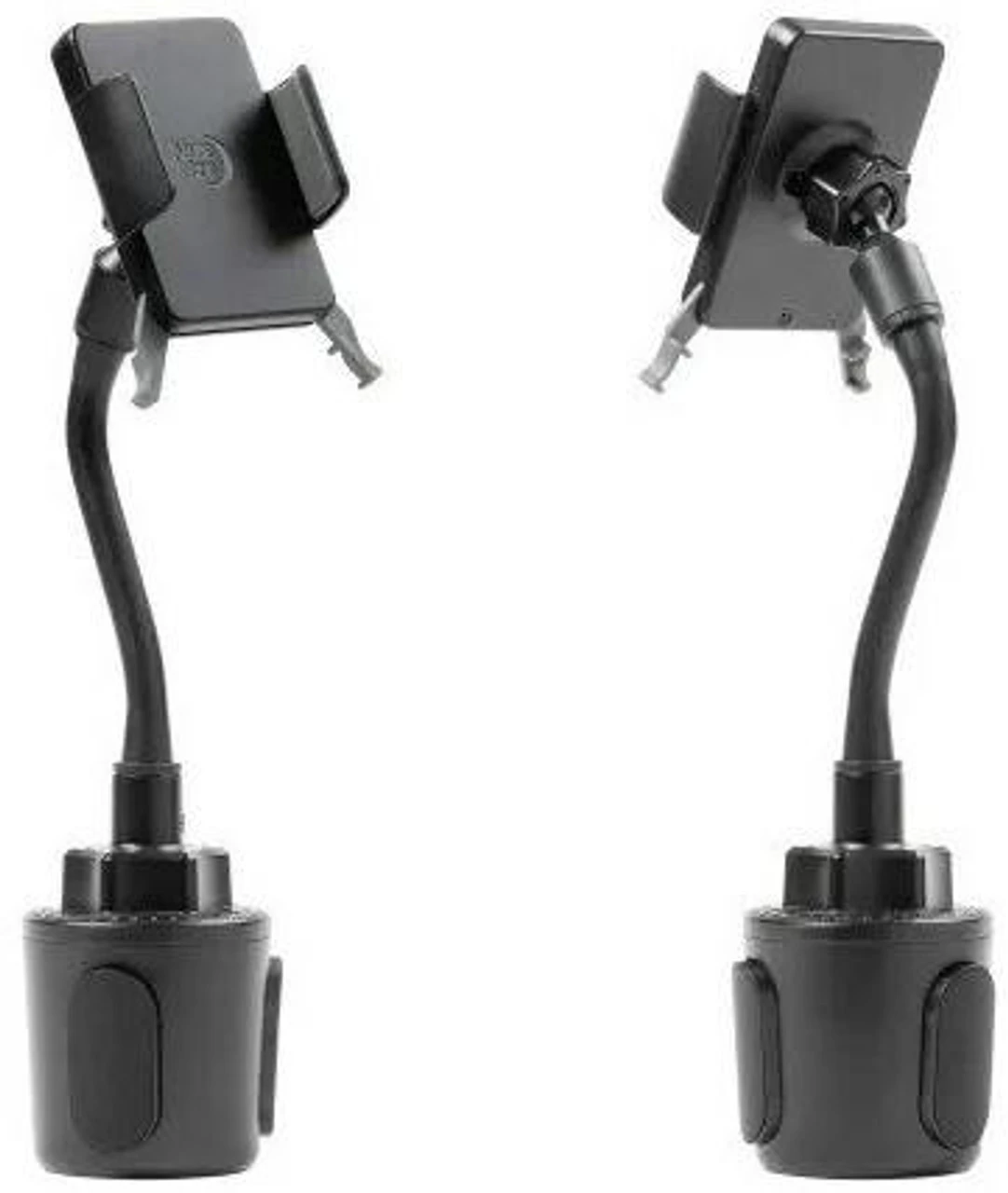 The Nite Ize Squeeze Universal Cup Holder Mount is a ball-and-socket mount that is easy to securely set up and is designed to hold virtually any phone with a case and accessories in clear view. The Squeeze Clamp features grippy arms and inner continuous force springs that amplify the hold of your phone, keeping it in place through off-roading adventures, tight turns, road trips, and beyond. This Mount has a universal base that expands to fit virtually any cup holder when turning the center knob and attached to a bendable arm that can be adjusted to the perfect angle. The Bendable Arm has a rounded ball joint that is designed to connect the socket to the back of the Squeeze Clamp.