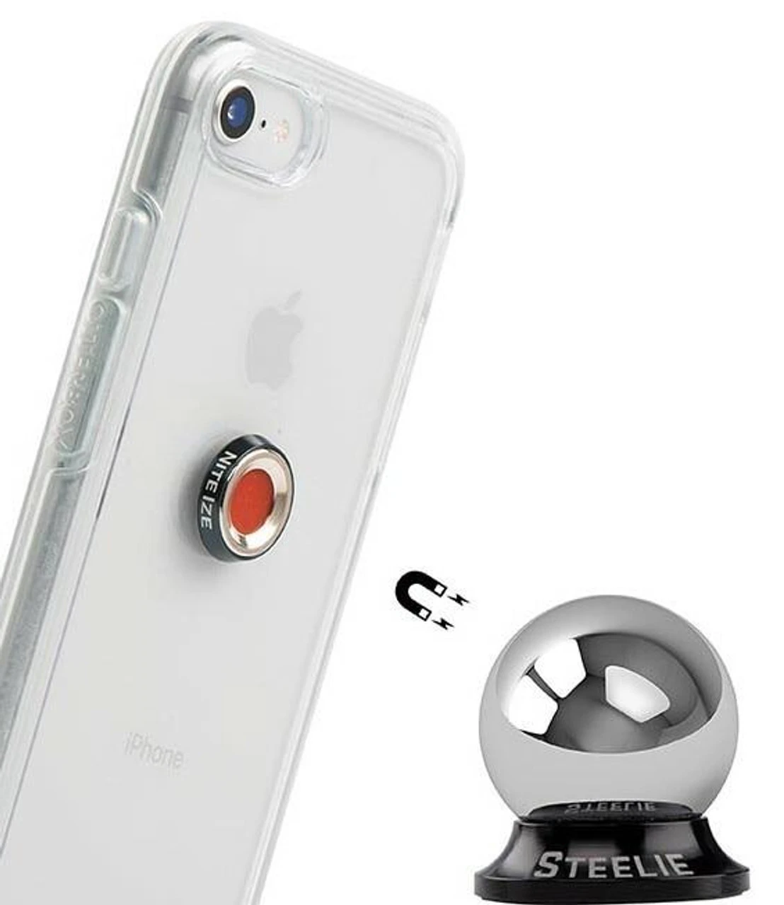 The Nite Ize Steelie mounts and magnets are designed to be easily interchangeable, universally compatible, and endlessly useful. The large selection of mounts allow you to expand your Steelie Ecosystem to the home, office, bike, and additional vehicles, giving you the power to attach and secure your phone for hands-free viewing anywhere.