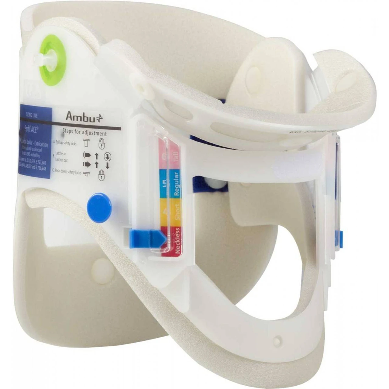 The North American Rescue ACE Cervical Collar is constructed of precision-engineered, heavy-duty plastic and lined with a protective layer of foam to ensure stability, immobilization, and comfort. The back of the collar is elongated to give complete support. However. Adaptability is the key feature of this collar. This cervical collar provides a perfect fit for any adult casualty.