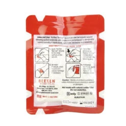 - Transparent backing designed to allow placement directly over the wound and easily conform to the casualty’s chest