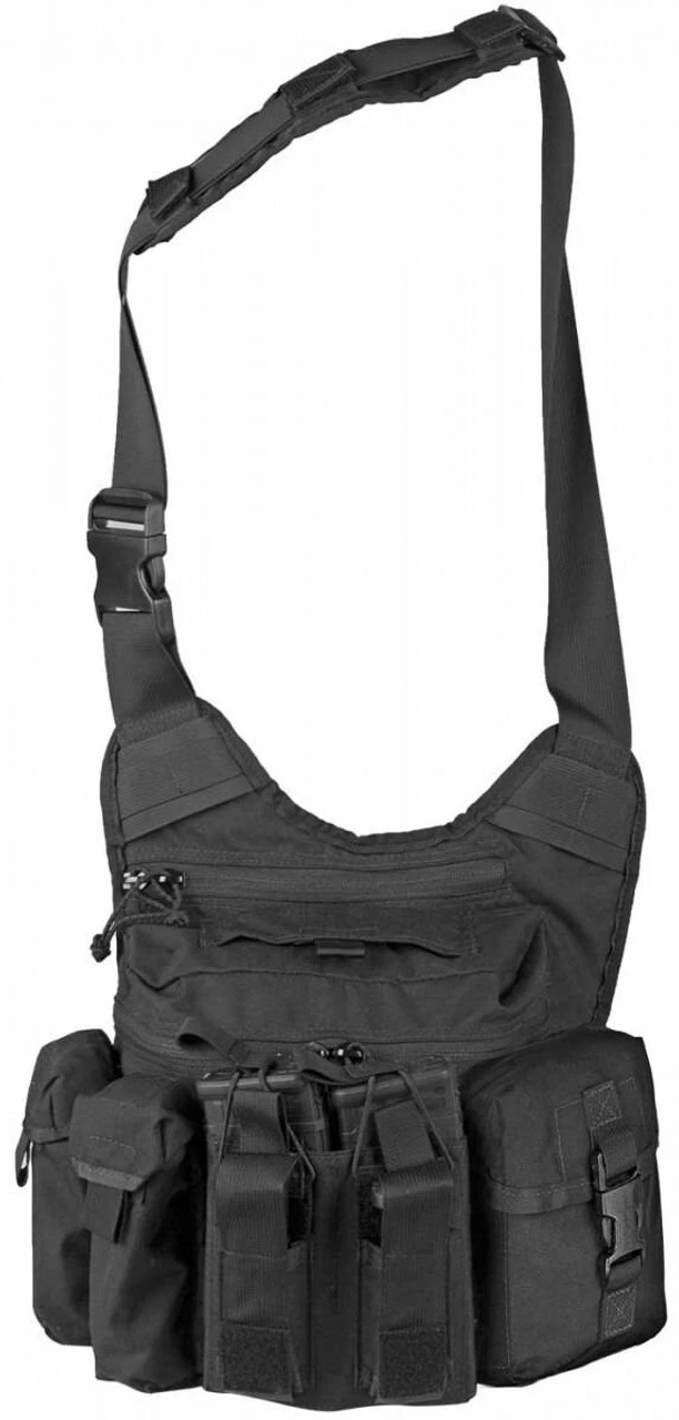 - Rugged nylon shoulder bag features adjustable, padded strap with quick release buckle