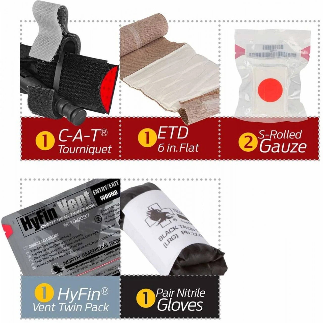 - Kits come in 3 configurations: Basic, with Combat Gauze, and Advanced