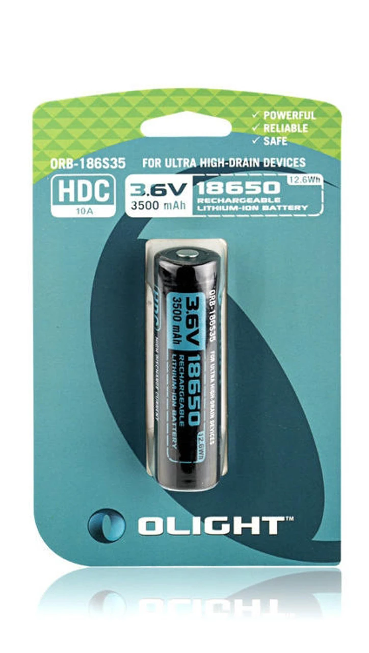 The Olight HDC 3500mAh 18650 Battery is specifically built for the M2R Warrior, and X7 Marauder. This battery gives you one of the highest performance 18650 batteries on the market with 3500mAh and 10A of power.