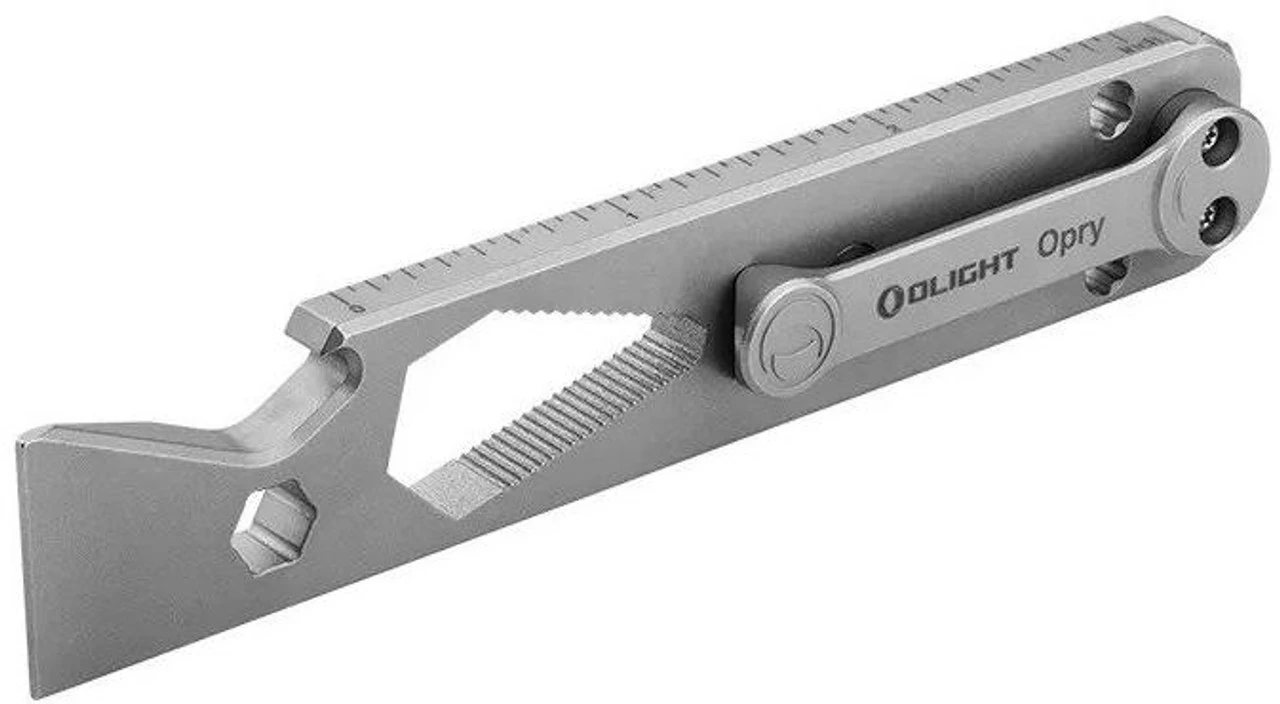 The Olight Opry Ti Tool combines a pry, bottle opener, hexagonal wrench, screwdriver, and a measuring ruler all into one convenient tool. This tool can withstand harsh environments with the high strength, good corrosion resistance, and high heat resistance TC4 titanium alloy. Easily grasps this tool in your hand thanks to the stonewash surface that feels comfortable to touch.
