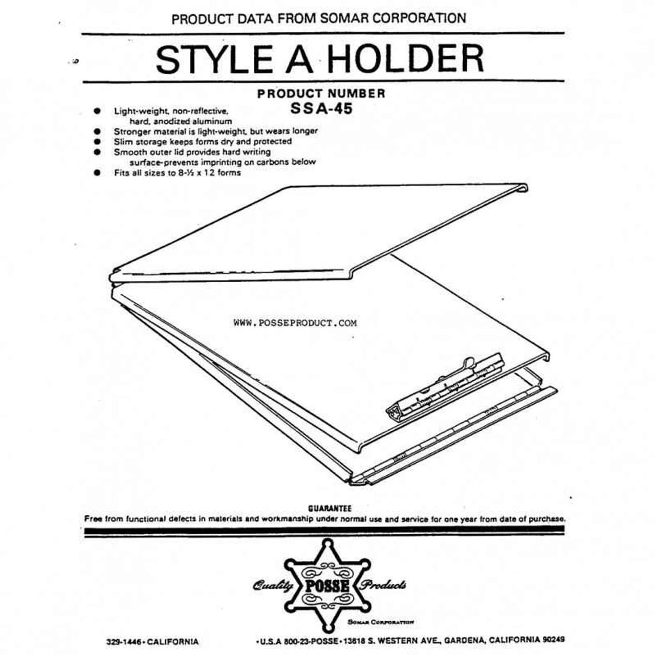 Designed with the modern law enforcement officer in mind, this product will help you keep organized and keep your frequently used forms available for immediate use. Constructed of sturdy material but is light weight and wears long. Slim storage keeps forms dry and protected. Smooth outer lid provides a necessary, hard writing surface.
