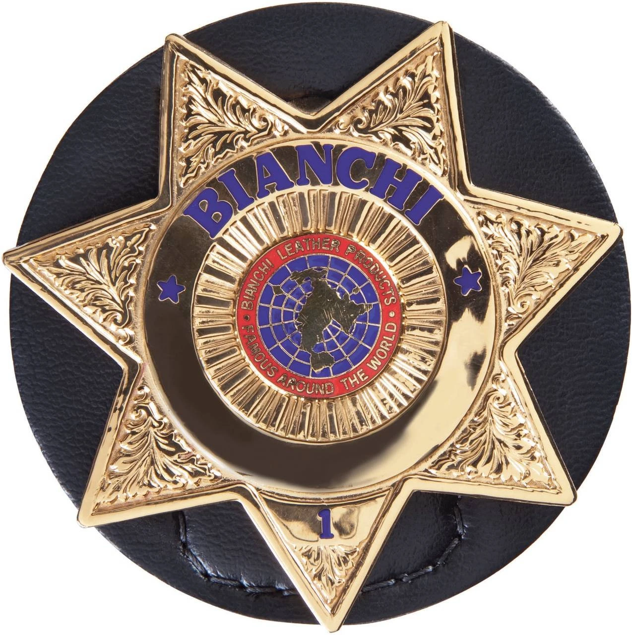 The Safariland 7350-01 Badge Holder clips on the belt for easy access and high visibility. It is constructed of a sturdy leather look synthetic with a heavy duty metal clip to provide secure attachment. The clip accepts belts up to 1.75″ wide. This round badge holder is 3″ (76 mm) in diameter, designed to carry a star badge.