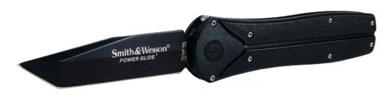 The Smith & Wesson Power Glide Tanto Blade Knife features a unique opening mechanism that combines the portability of a folder knife with the look and feel of a fixed blade knife.