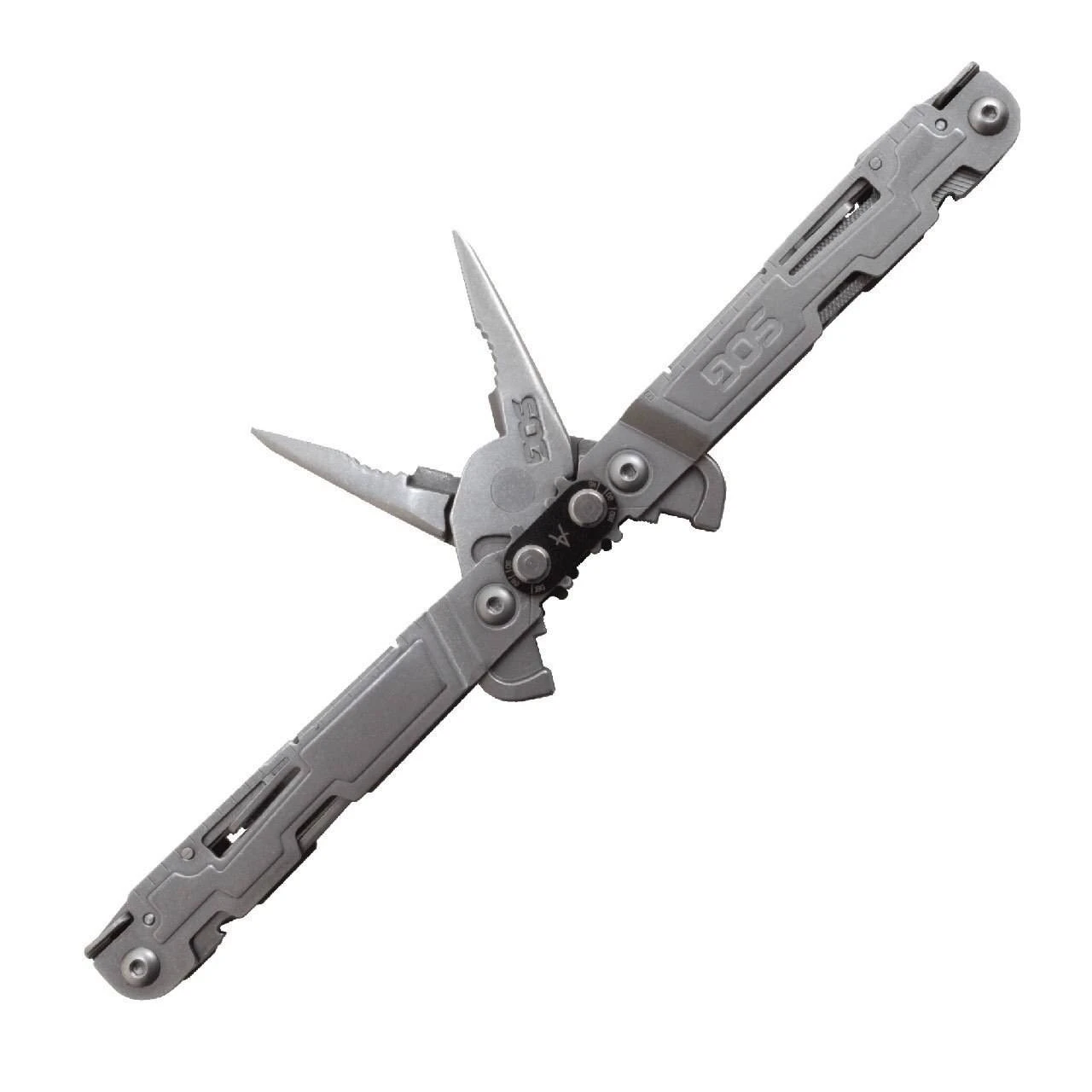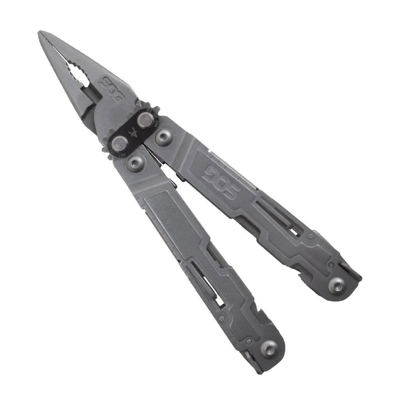 The SOG PowerAccess is the ultimate EDC multi-tool. Pocketable, streamlined, comfortable and equipped with the patented gear-driven Compound Leverage mechanism it doubles the torque at plier jaws maintaining grip and reducing chances of slipping off nuts and bolts. The outward-opening components are easily accessible with the multi-tool closed and will lock securely open. When closed, the PowerAccess has a centered, magnetic hex bit driver that can utilized any widely available ¼” hex bit.
