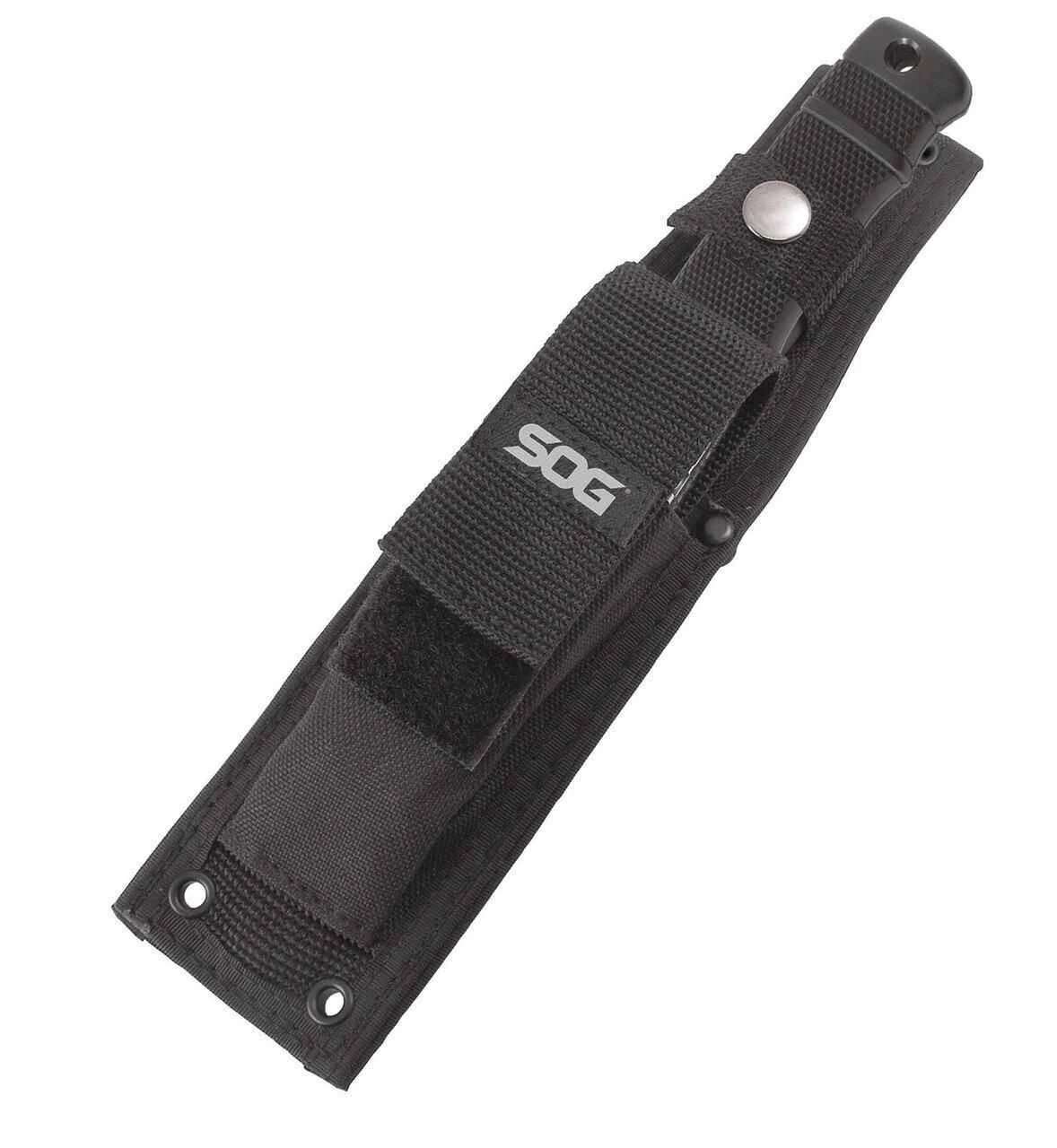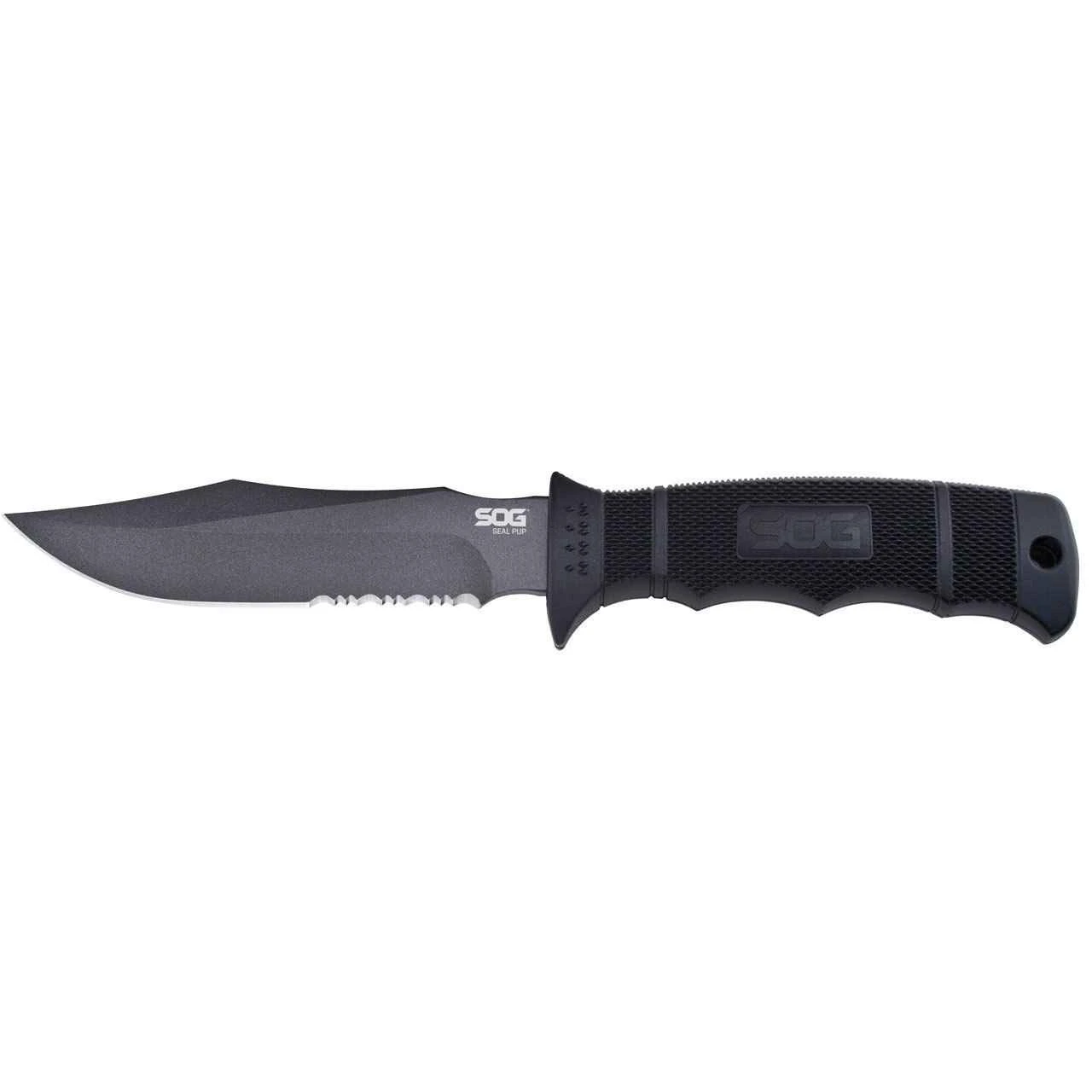 The SOG SEAL Pup is made for those who serve but also performs up to the standards of people who need a strong, reliable fixed-blade knife. Featuring AUS-8 a high grade Japanese stainless steel with a good balance of toughness, strength, and edge holding ability. The blade is also partially serrated and powder coated for low-reflection and corrosion resistance. Its lightweight, glass-reinforced nylon handle features a raised diamond pattern for secure gripping. Comes with two sheath choices.