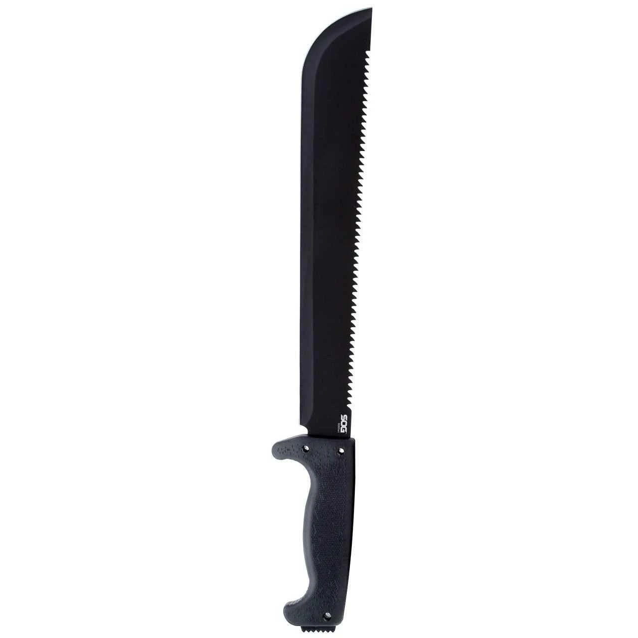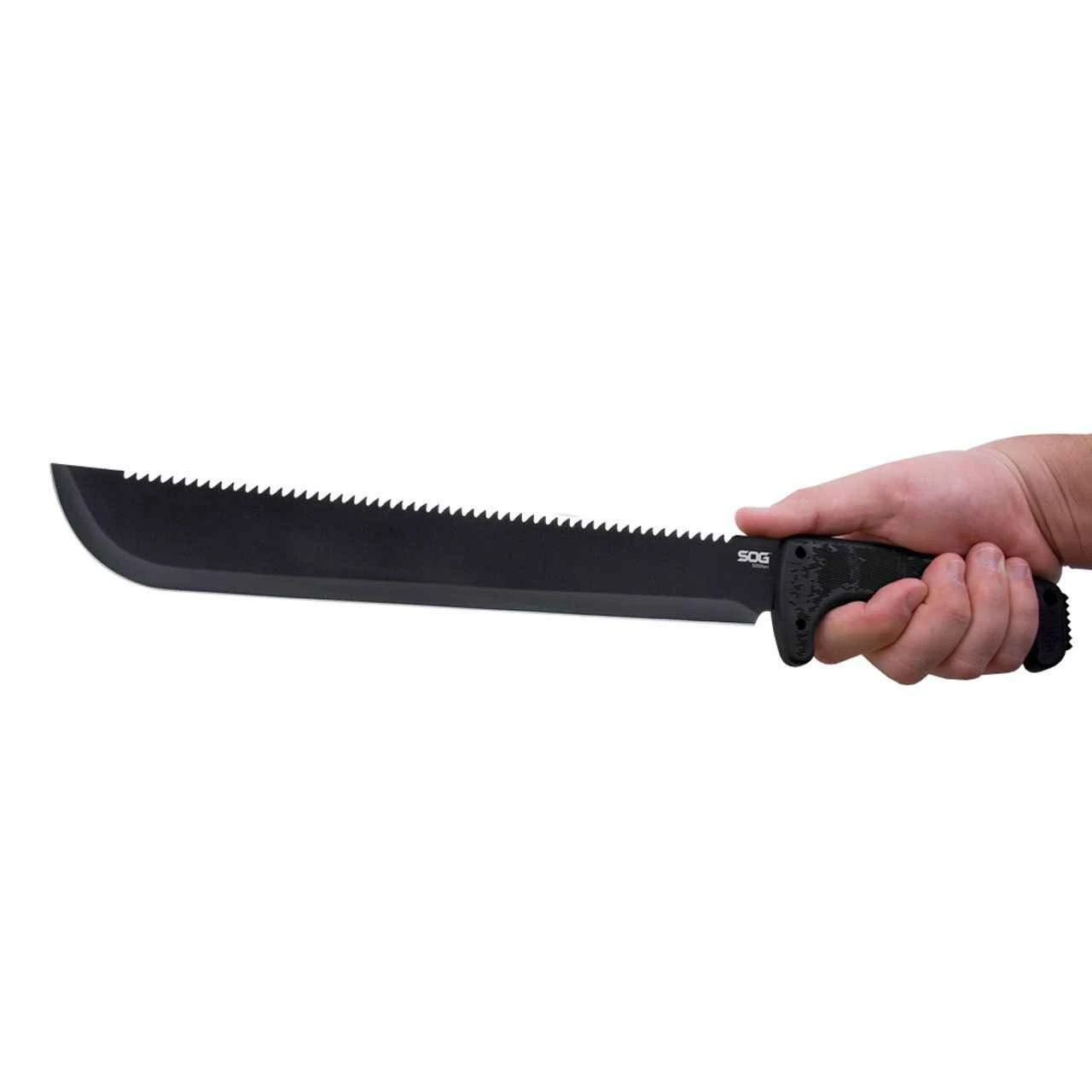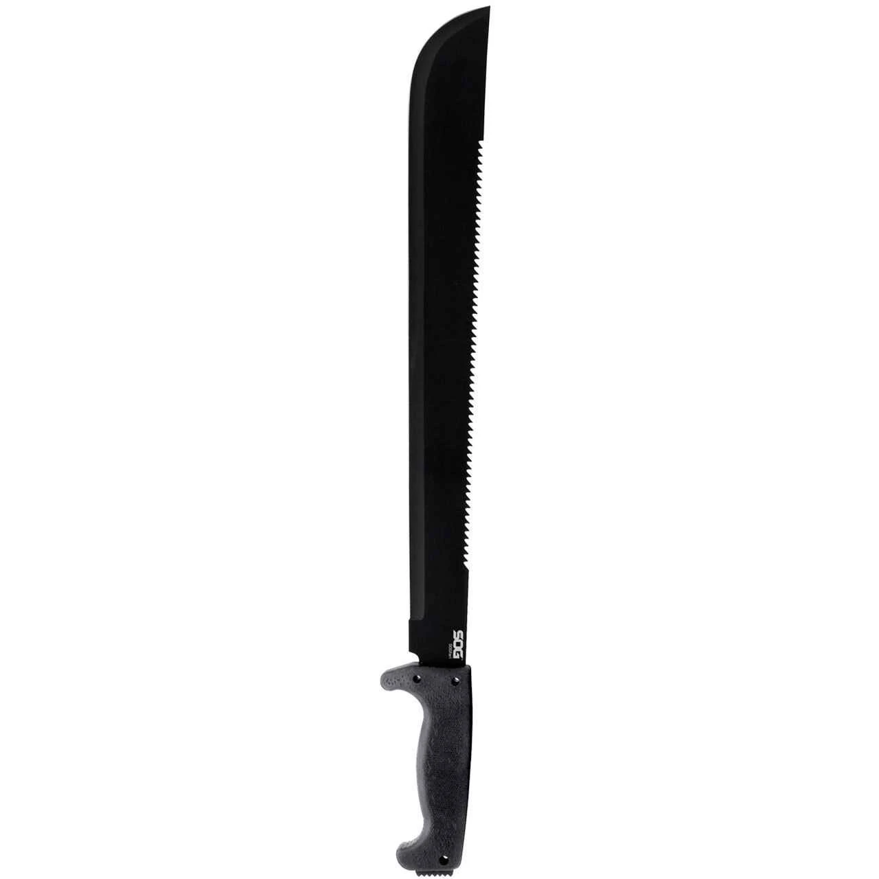 The SOGFari machetes are new additions to the SOG family and are available in 13 and 18 inches. One of the more useful edged tools in the world machetes have cleared brush, blazed trails, chopped wood, made shelters, harvested crops, prepared meals, and hunted and protected. The SOGFari makes sure the weight is right and the handles are comfortable for extended use. SOG has added a real working saw on the back of the blades with teeth that cut deep. Extended out of the back of the handle is a spiked tang for pounding and scraping. There are even holes in the handle to mount lanyards. SOGFari… the go to tool for survival, exploration and adventure!