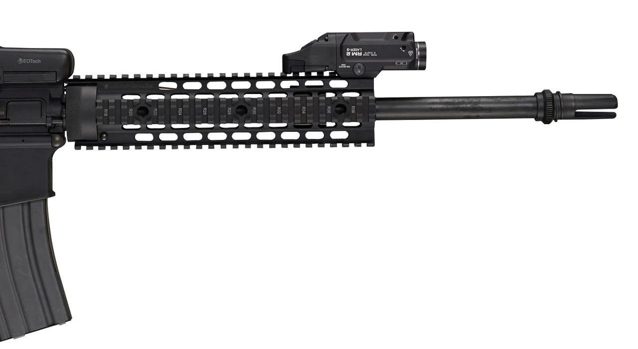 - Securely attaches to long guns with MIL Standard 1913 rails