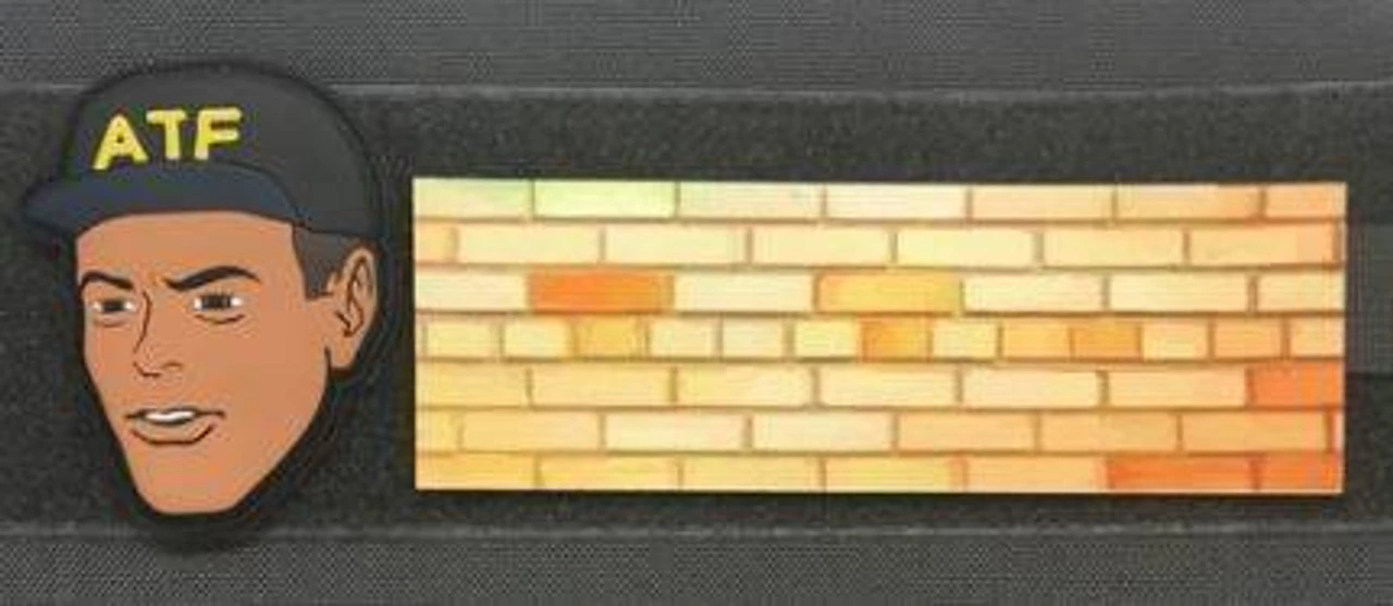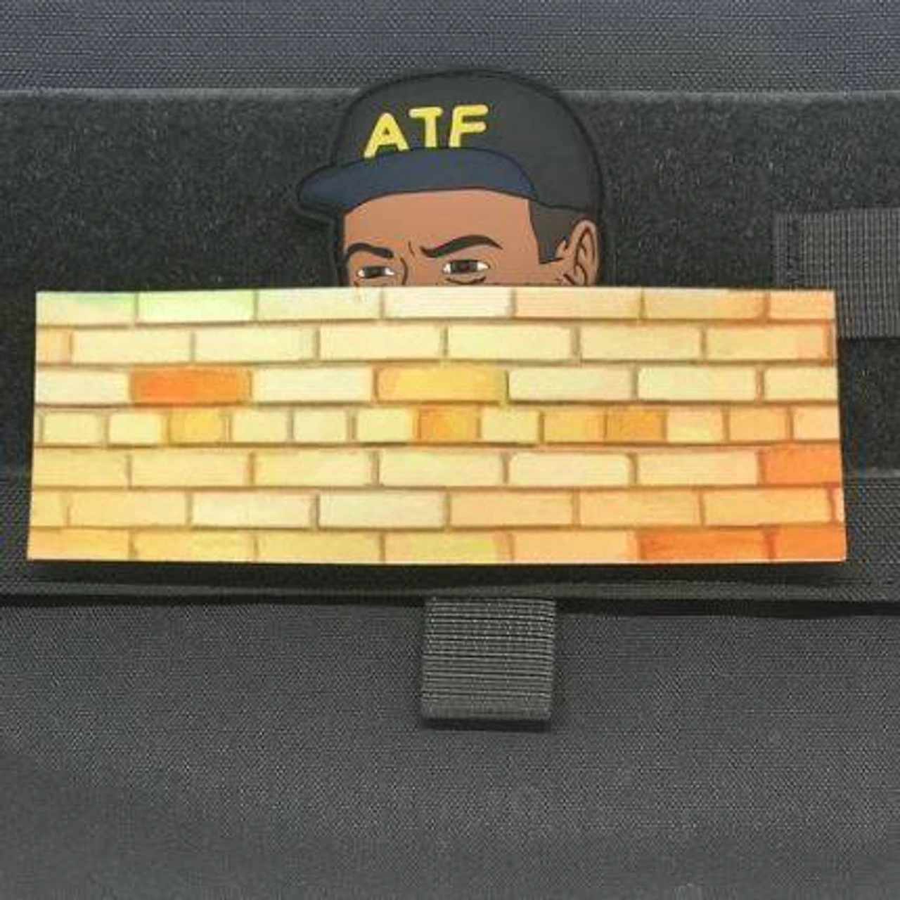 This set includes a hook backed 3D PVC ATF agent and a hook backed sublimated wall for him to peak over and see what you’re up to.