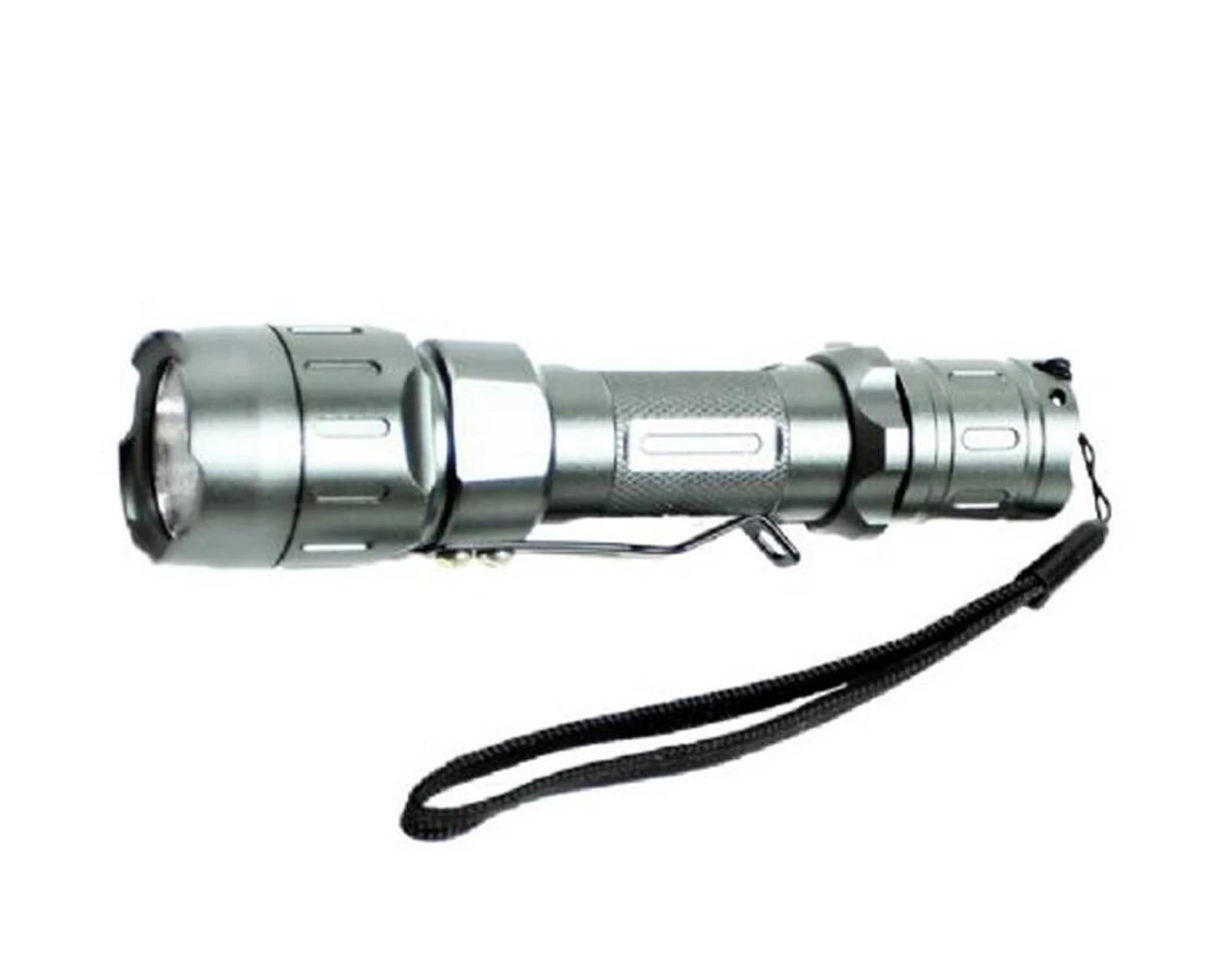 The Tactical Torch flashlight from Uzi features an aluminum body with steel pocket clip for carry convenience. 3 watt Cree LED for 160 lumens and a beam distance of 30 meters. Simple tail cap switch to cycle between the two light levels and one flashing mode. Uses two (2) CR123A batteries (included).Specifications: