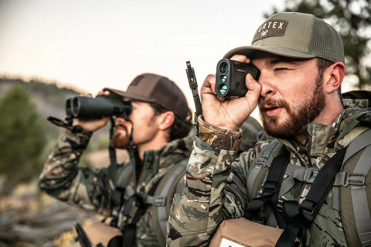 Vortex Optics Crossfire HD 1400 Laser Rangefinder has a 1,400-yardmax range (750 on deer), plenty of power to range and the power to pick apart any landscape thanks to the HD optical system. There are three target modes (Normal, Fast, Last), two range modes (HCD, LOS) and a red TOLED Display to keep readouts cleat in any lighting conditions. This lightweight powerhouse has everything you need and nothing you don’t when a bow and rifle hunt.